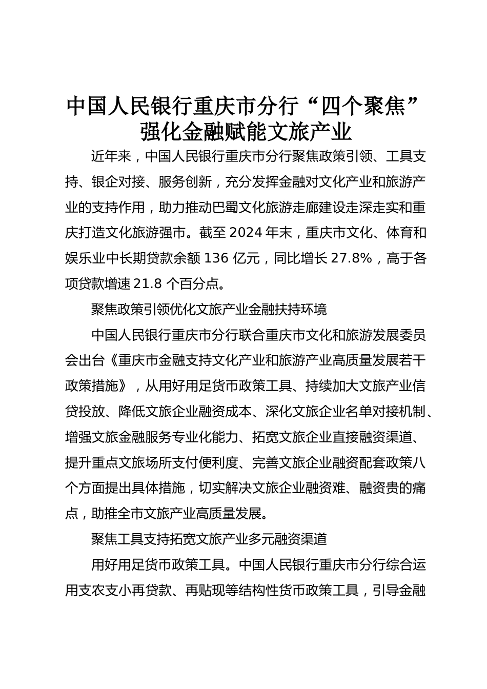 中國(guó)人民銀行重慶市分行 “ 四個(gè)聚焦” 強(qiáng)化金融賦能文旅產(chǎn)業(yè)