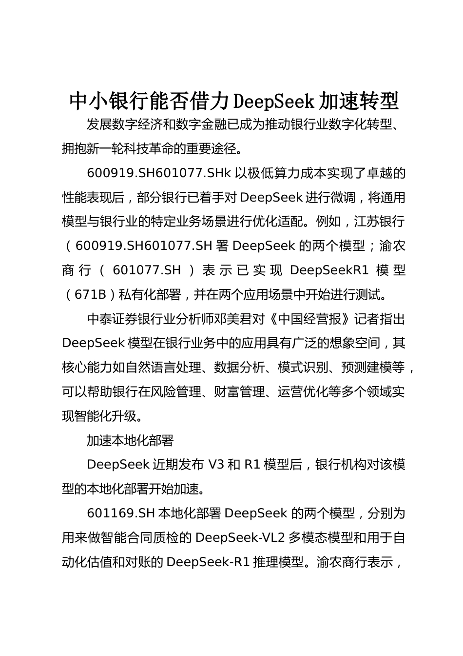 中小銀行能否借力 DeepSeek 加速轉(zhuǎn)型