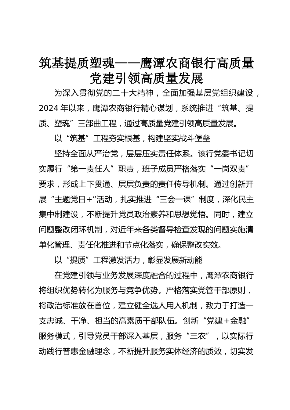 筑基 提質(zhì) 塑魂——鷹潭農(nóng)商銀行高質(zhì)量黨建引領(lǐng)高質(zhì)量發(fā)展
