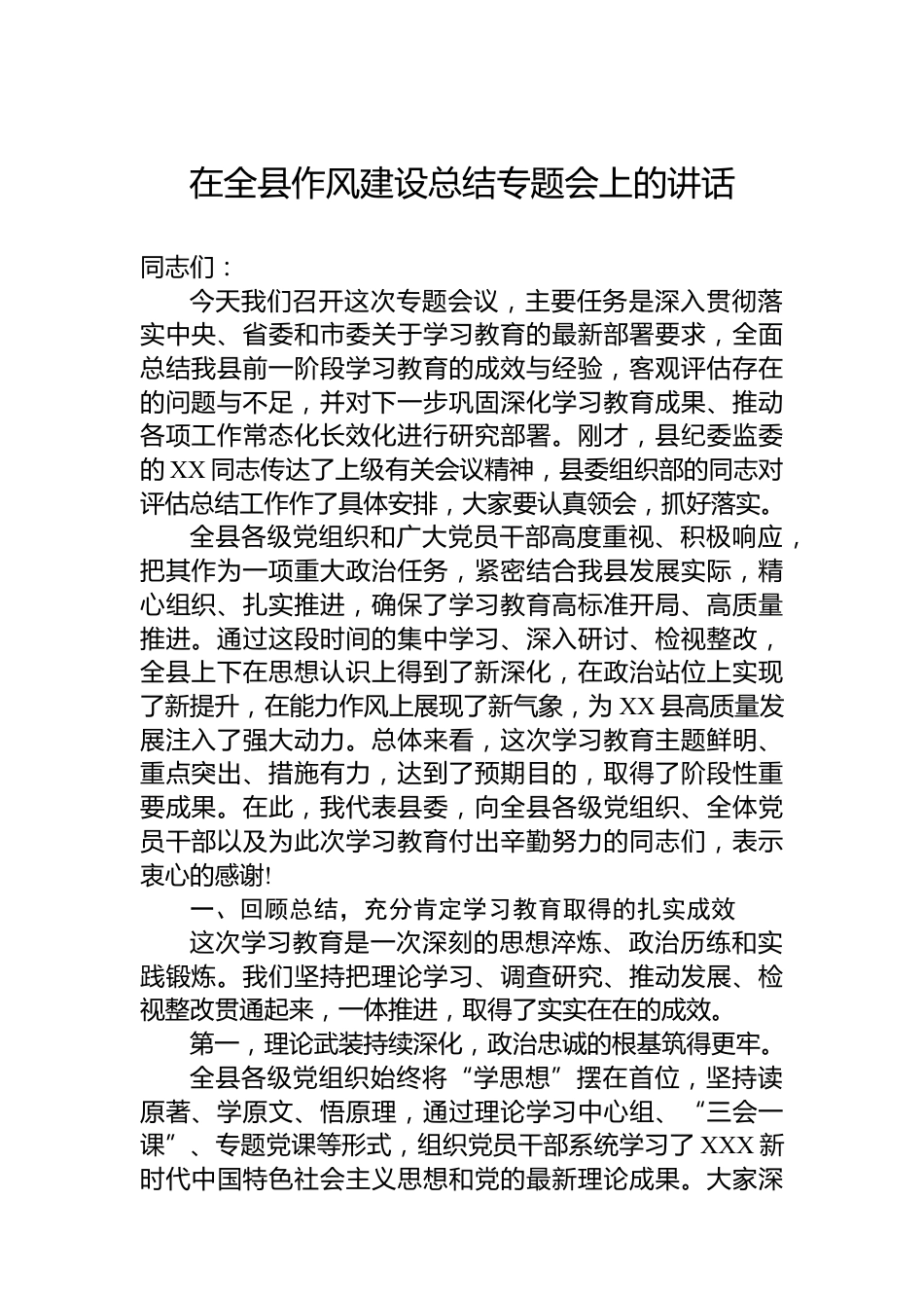 在全縣作風(fēng)建設(shè)總結(jié)專題會上的講話匯編(6篇)