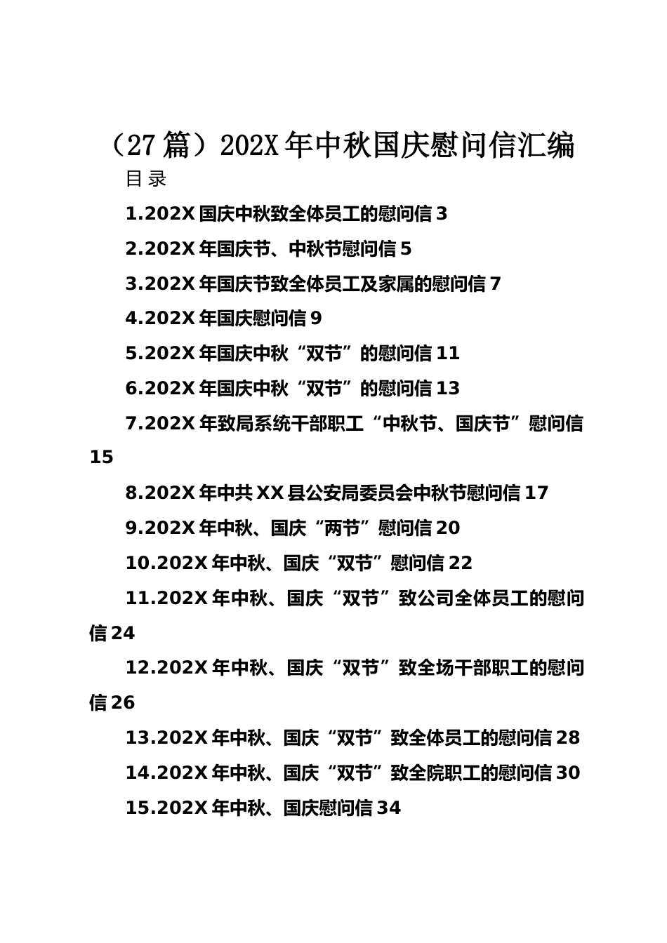 (27篇)202X年中秋國慶慰問信匯編