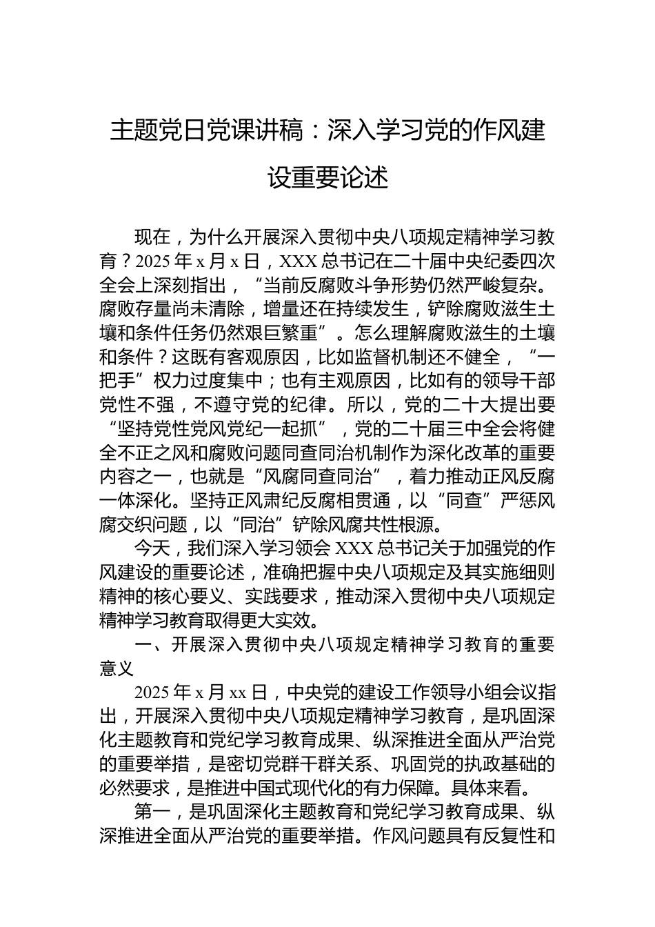 主題黨日黨課講稿:深入學(xué)習(xí)黨的作風(fēng)建設(shè)重要論述