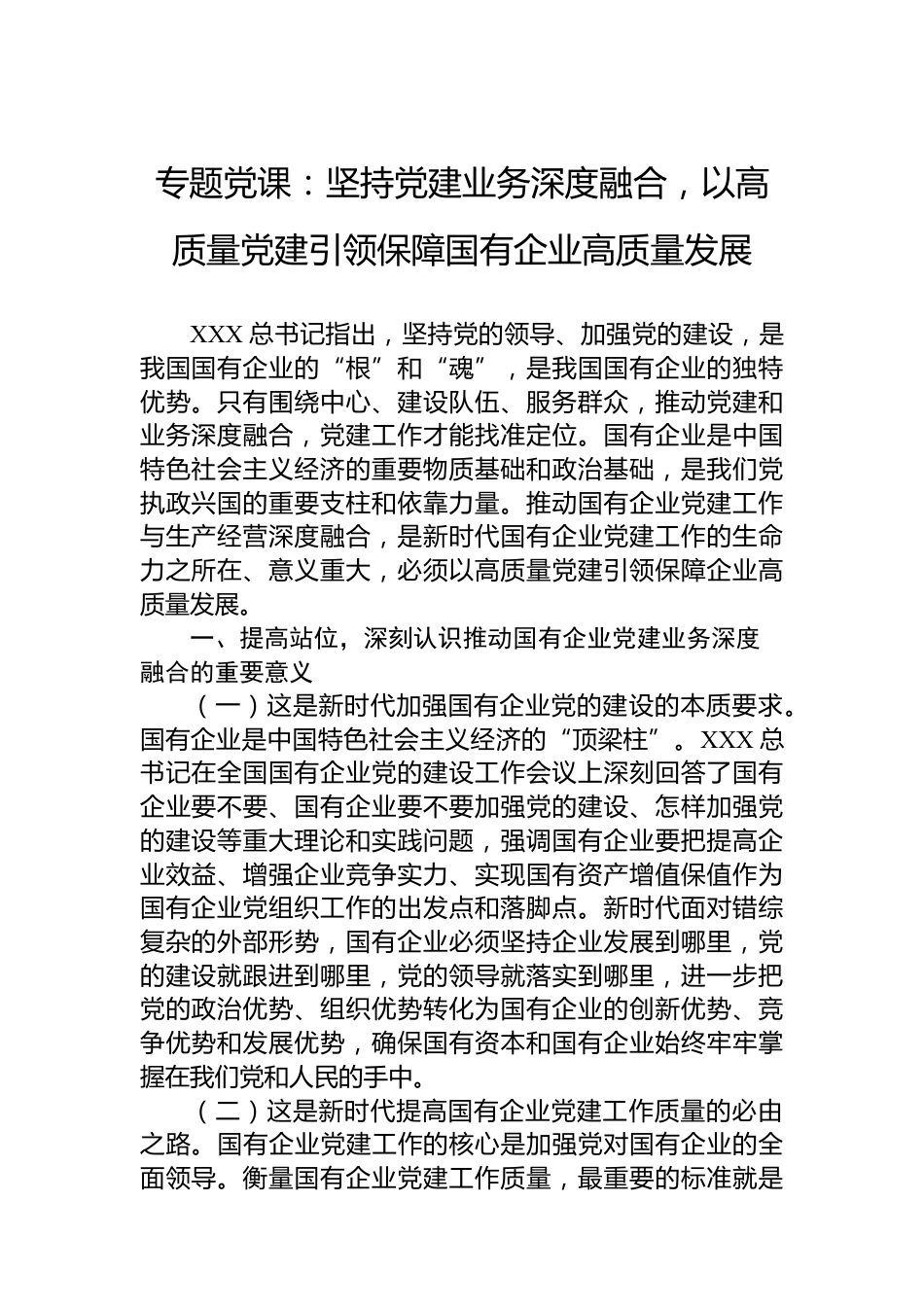 專題黨課:堅持黨建業(yè)務(wù)深度融合,以高質(zhì)量黨建引領(lǐng)保障國有企業(yè)高質(zhì)量發(fā)展