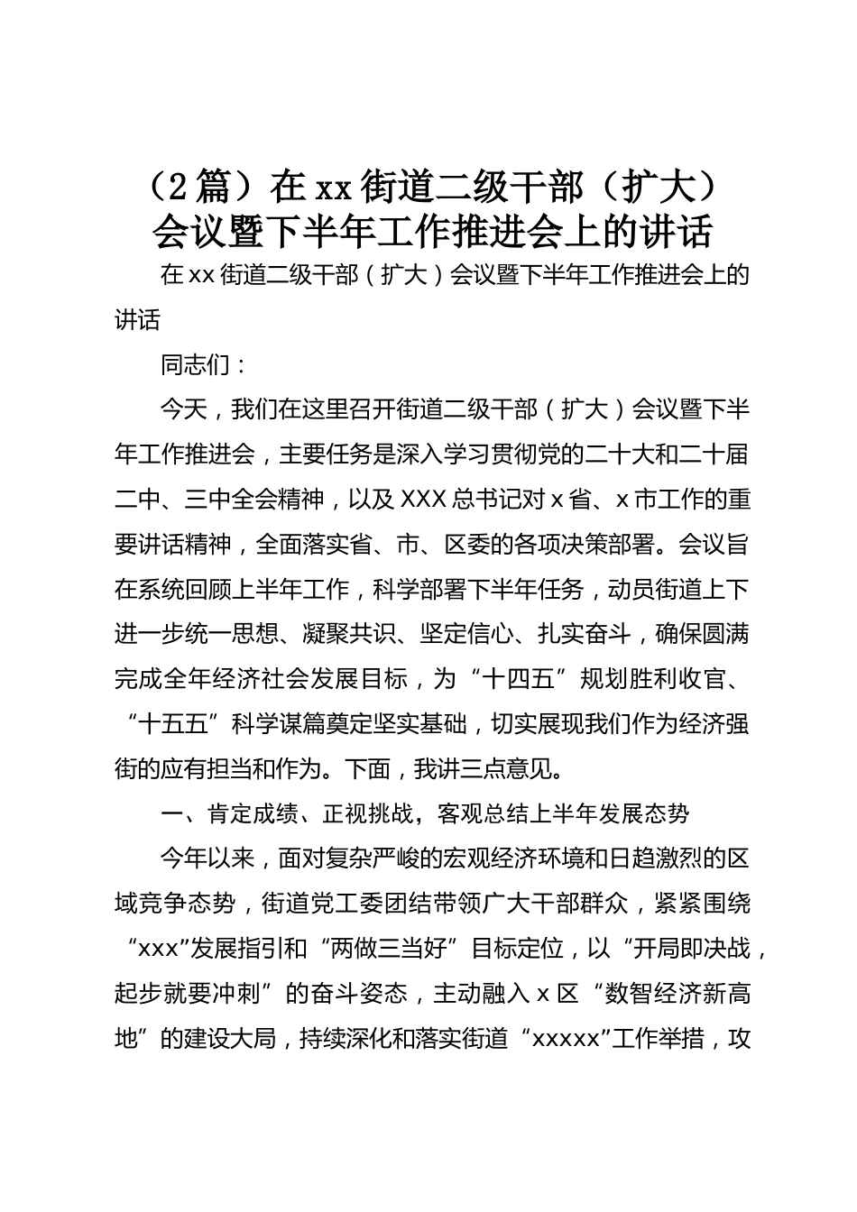 (2篇)在xx街道二級干部(擴(kuò)大)會議暨下半年工作推進(jìn)會上的講話VIP免費(fèi)