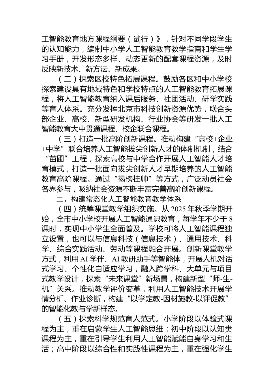 北京市教育委員會關(guān)于印發(fā)《北京市推進中小學(xué)人工智能教育工作方案(2025—2027年)》的通知