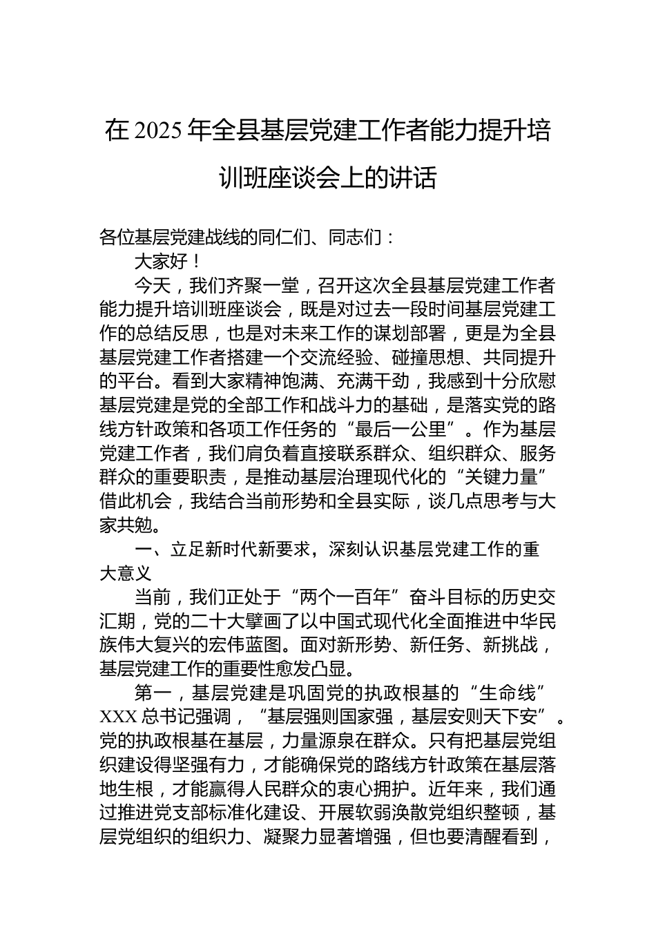 在2025年全縣基層黨建工作者能力提升培訓(xùn)班座談會上的講話