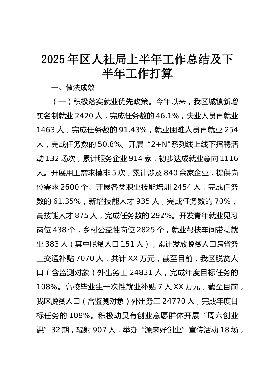2025年區(qū)人社局上半年工作總結(jié)及下半年工作打算
