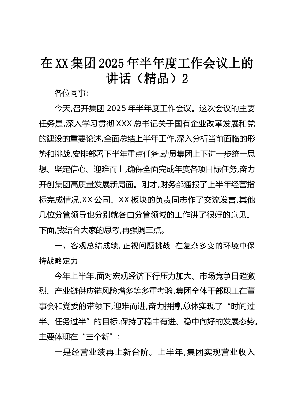 在XX集團2025年半年度工作會議上的講話(精品)2