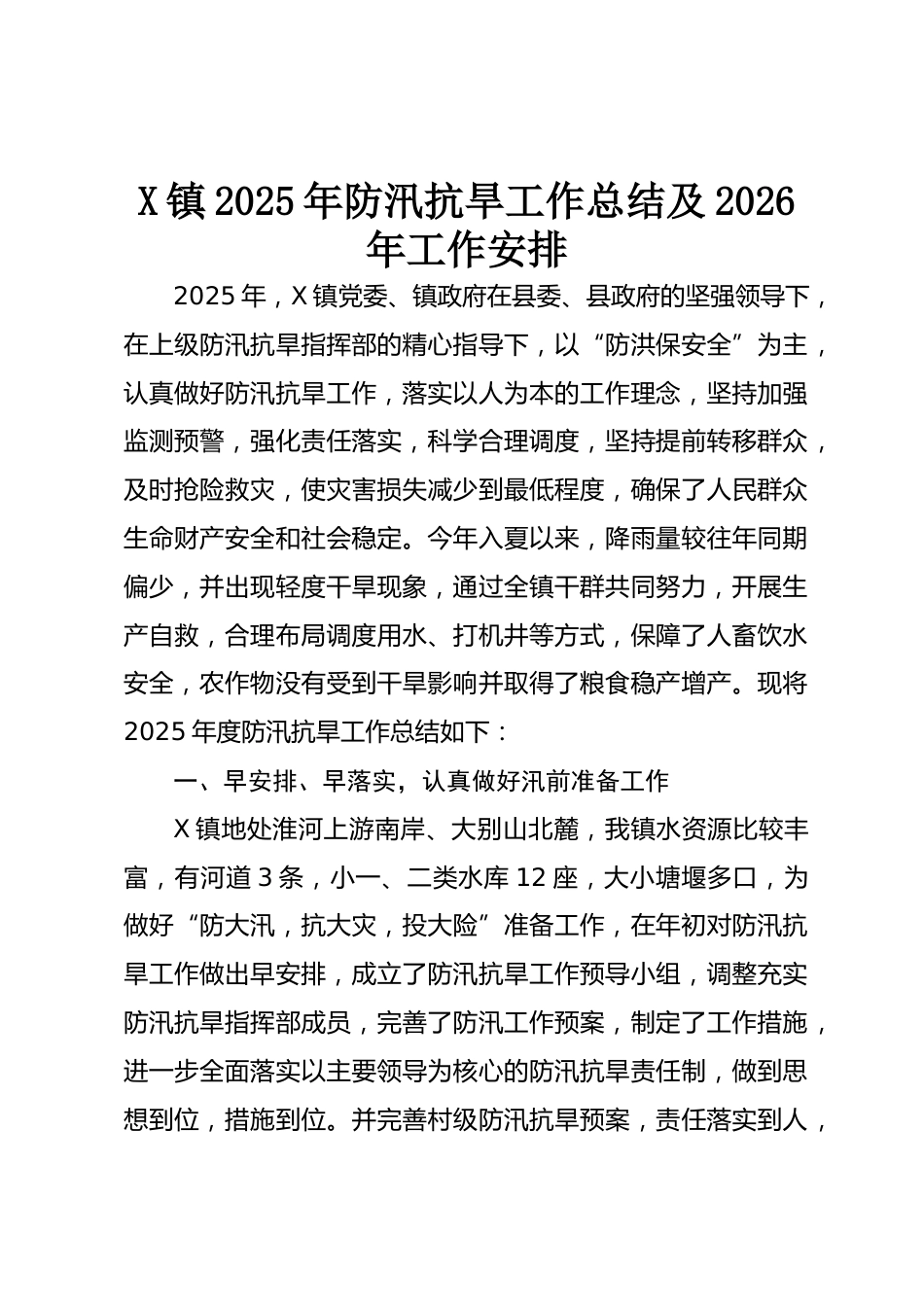 X鎮(zhèn)2025年防汛抗旱工作總結(jié)及2026年工作安排