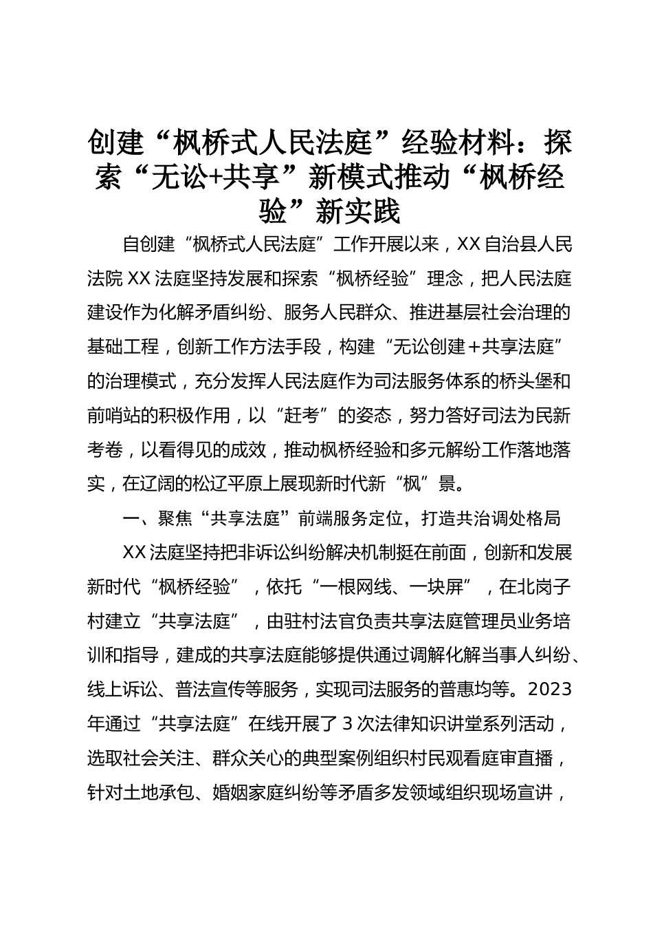 創(chuàng)建“楓橋式人民法庭”經(jīng)驗材料:探索“無訟+共享”新模式 推動“楓橋經(jīng)驗”新實踐