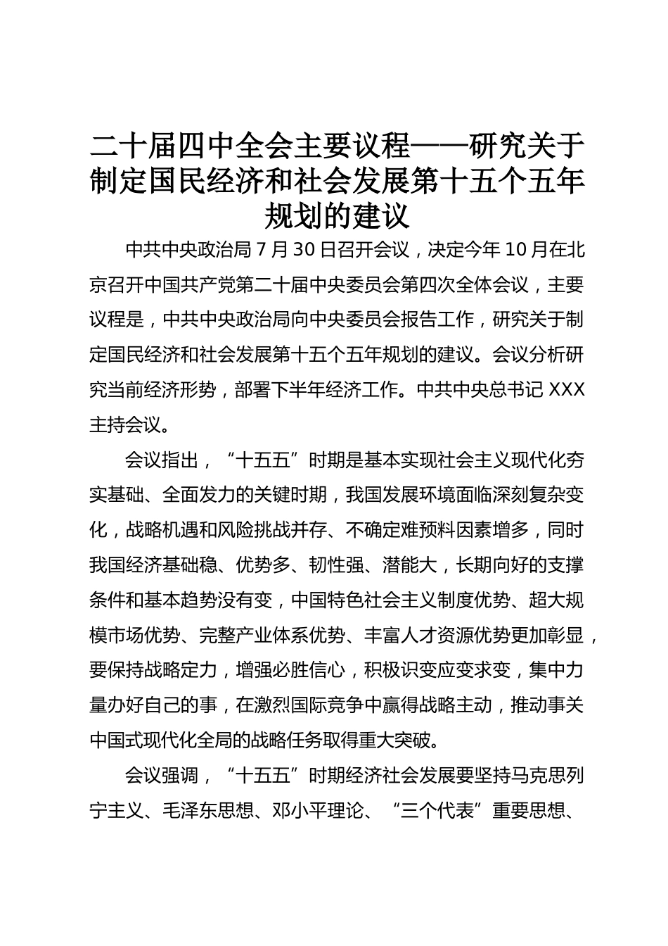 二十屆四中全會(huì)主要議程——研究關(guān)于制定國(guó)民經(jīng)濟(jì)和社會(huì)發(fā)展第十五個(gè)五年規(guī)劃的建議VIP免費(fèi)