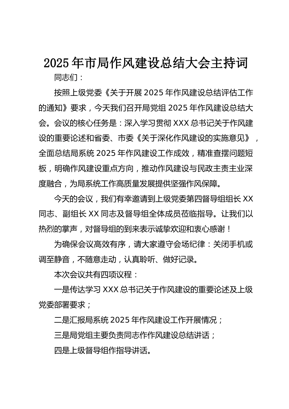 2025年市局作風(fēng)建設(shè)總結(jié)大會(huì)主持詞