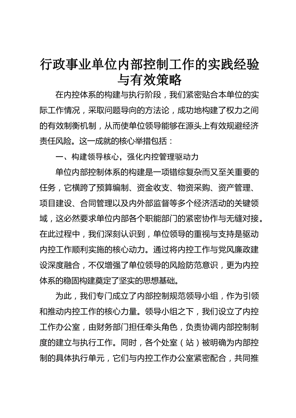 行政事業(yè)單位內(nèi)部控制工作的實(shí)踐經(jīng)驗(yàn)與有效策略VIP免費(fèi)
