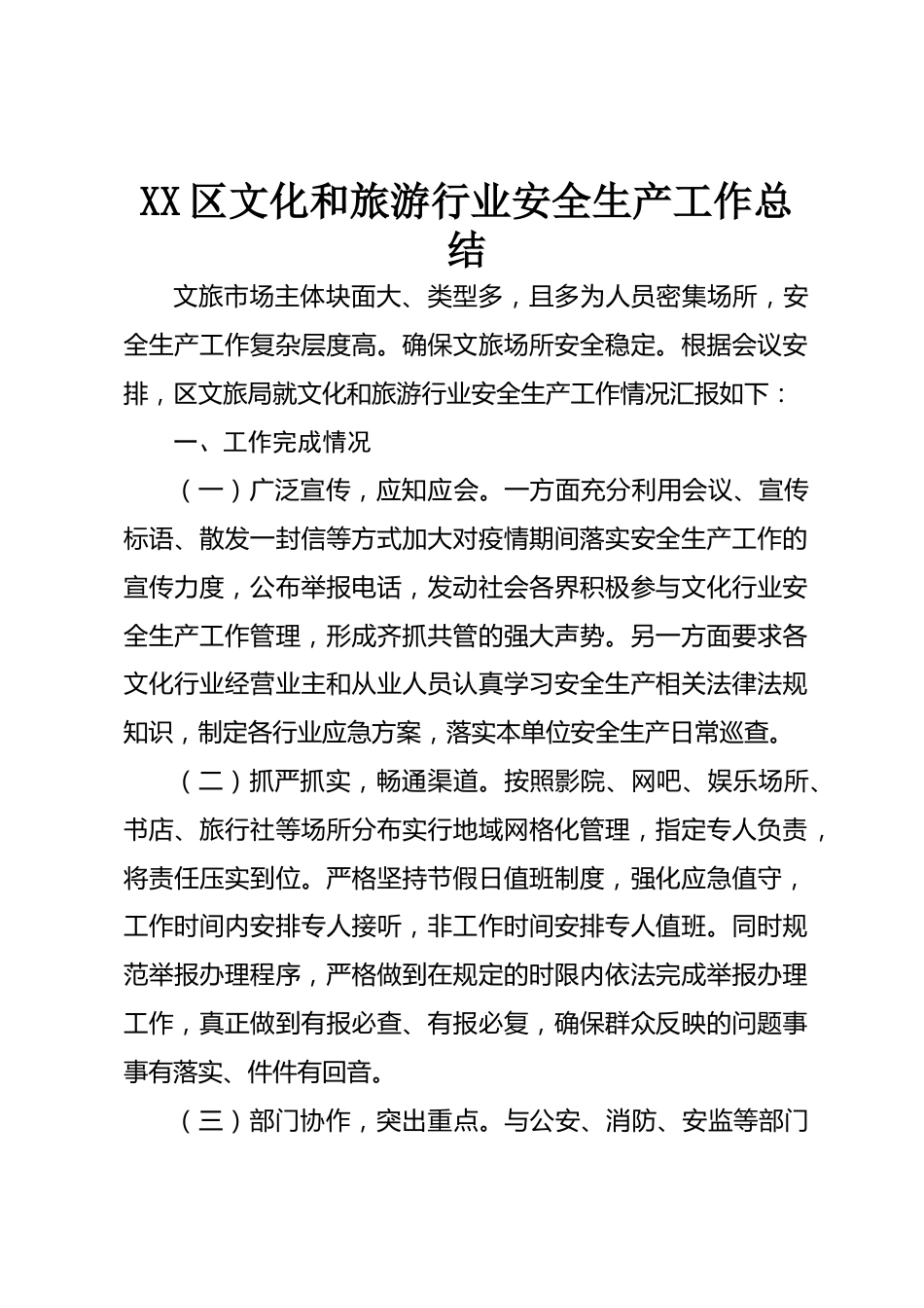 XX區(qū)文化和旅游行業(yè)安全生產(chǎn)工作總結(jié)