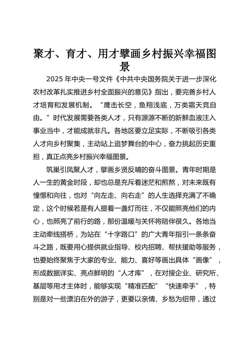 聚才、育才、用才擘畫(huà)鄉(xiāng)村振興幸福圖景