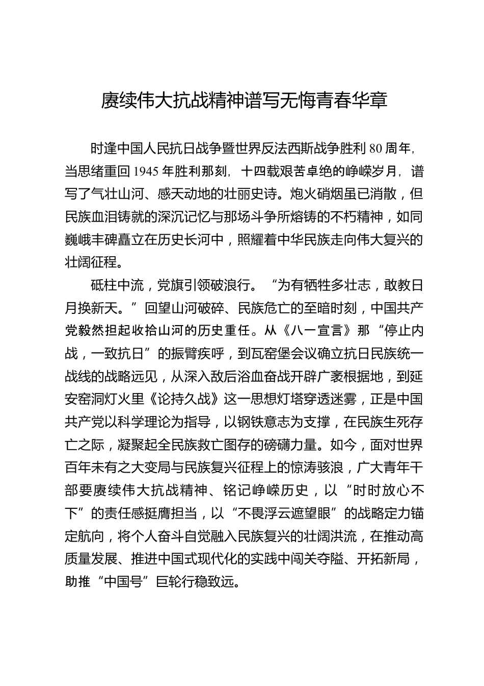【中心組研討發(fā)言】賡續(xù)偉大抗戰(zhàn)精神譜寫無悔青春華章