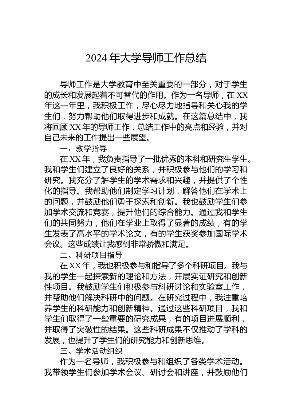 2024年大學導師工作總結