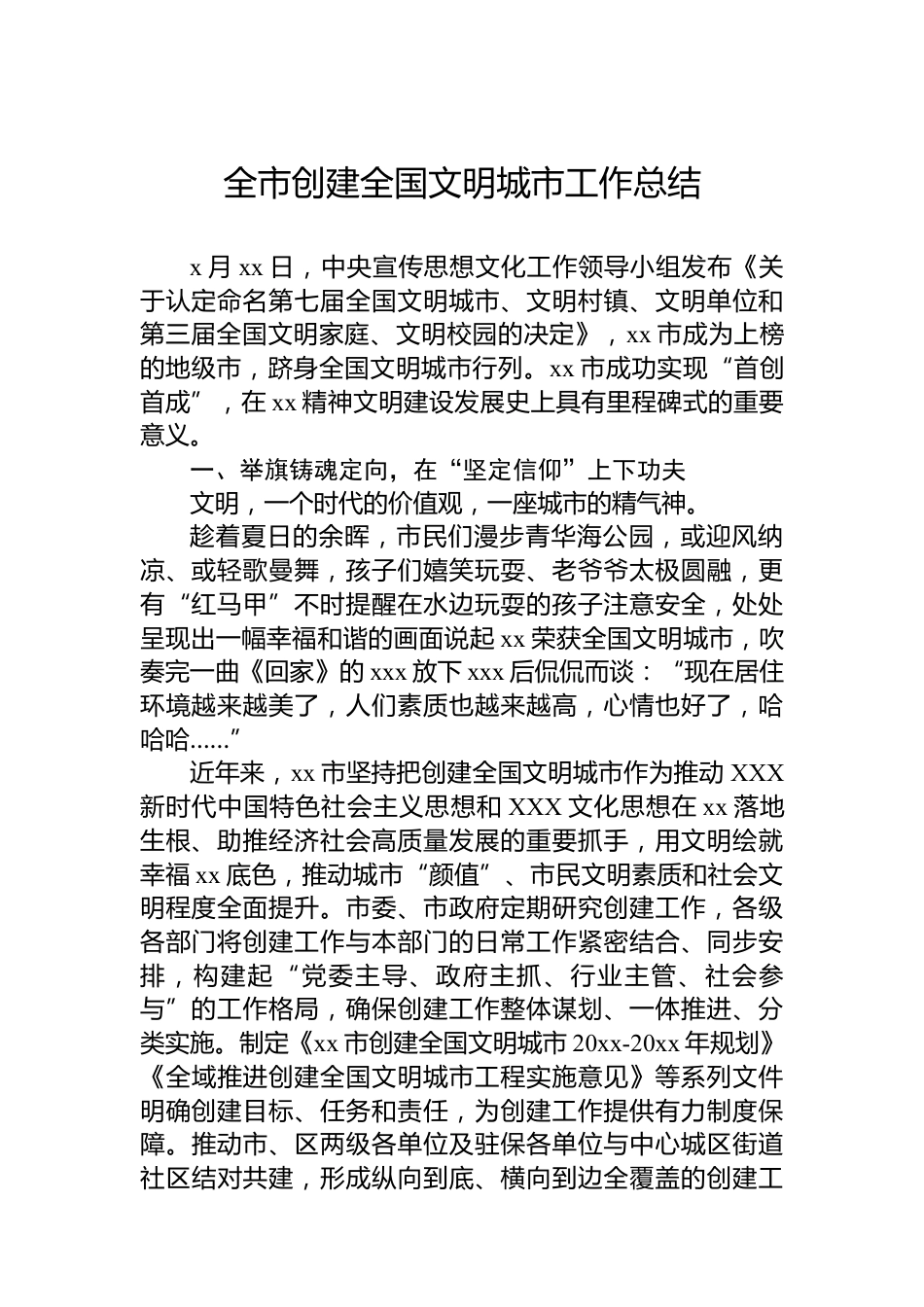 全市創(chuàng)建全國(guó)文明城市工作總結(jié)材料匯編(6篇)