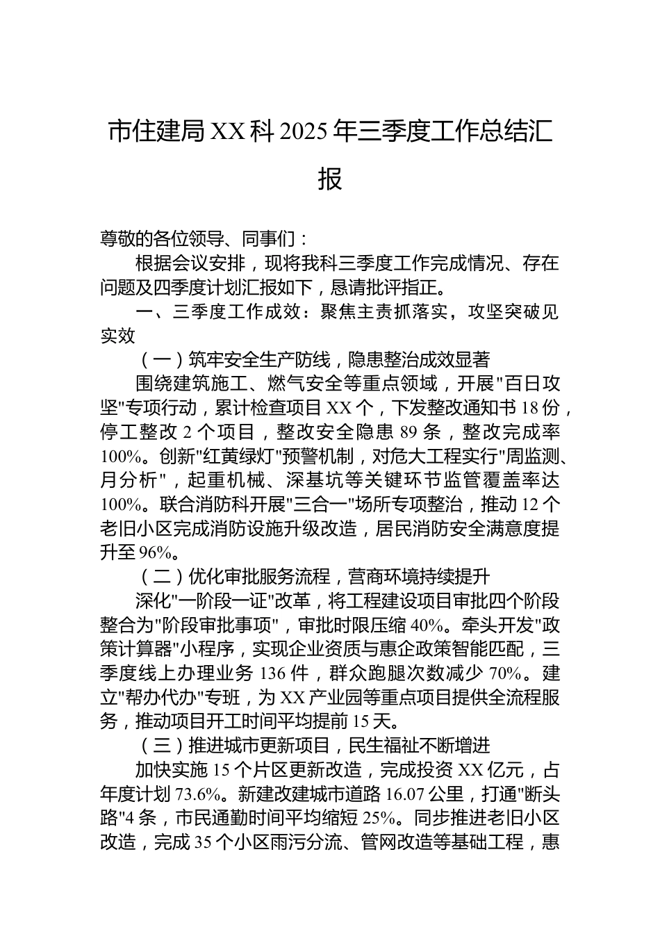 市住建局XX科2025年三季度工作總結(jié)匯報(bào)