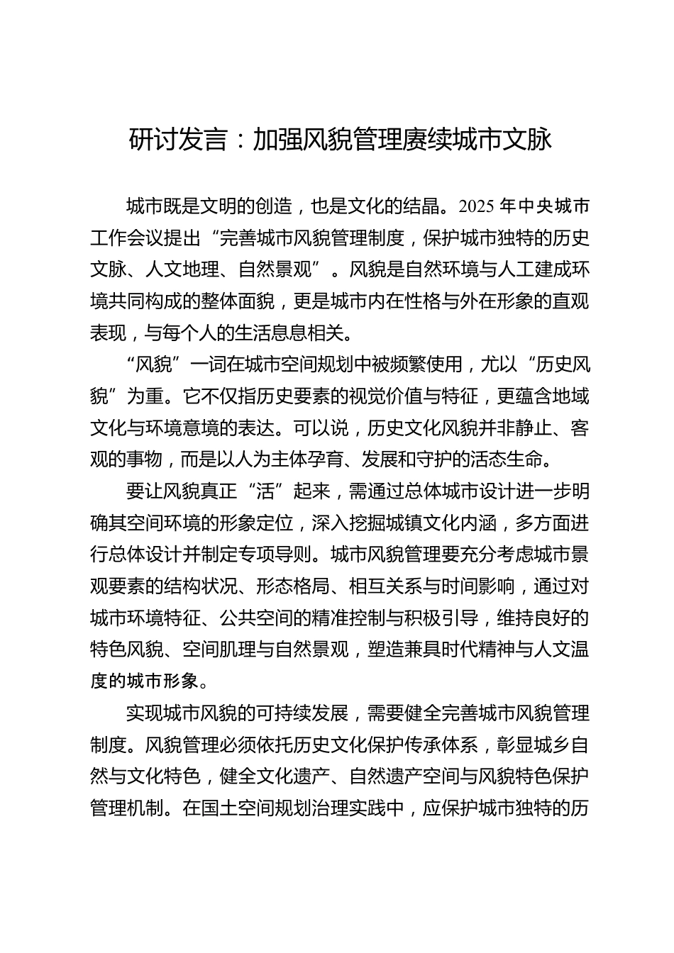 研討發(fā)言:加強風(fēng)貌管理 賡續(xù)城市文脈