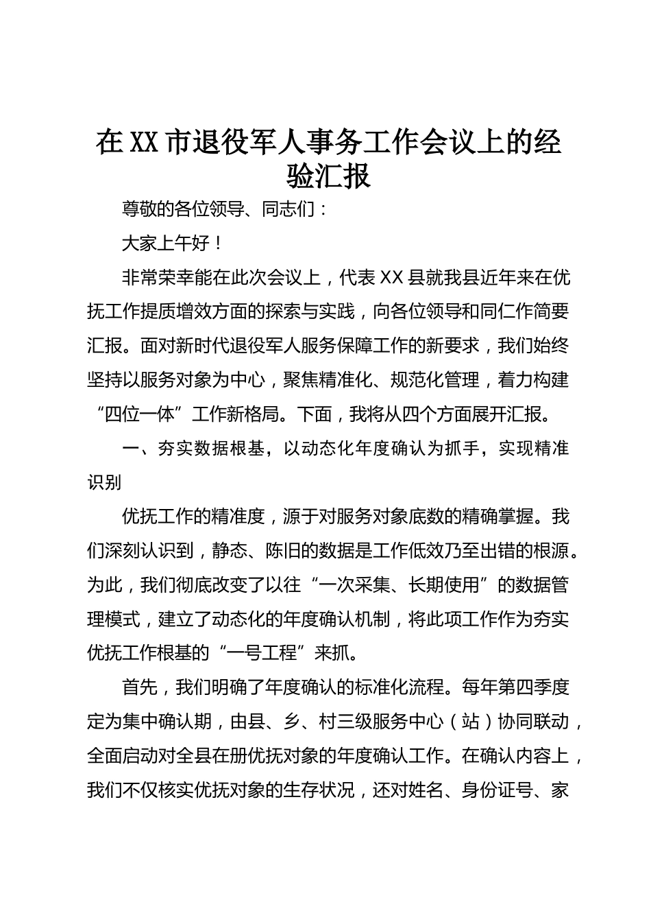 在XX市退役軍人事務(wù)工作會議上的經(jīng)驗匯報