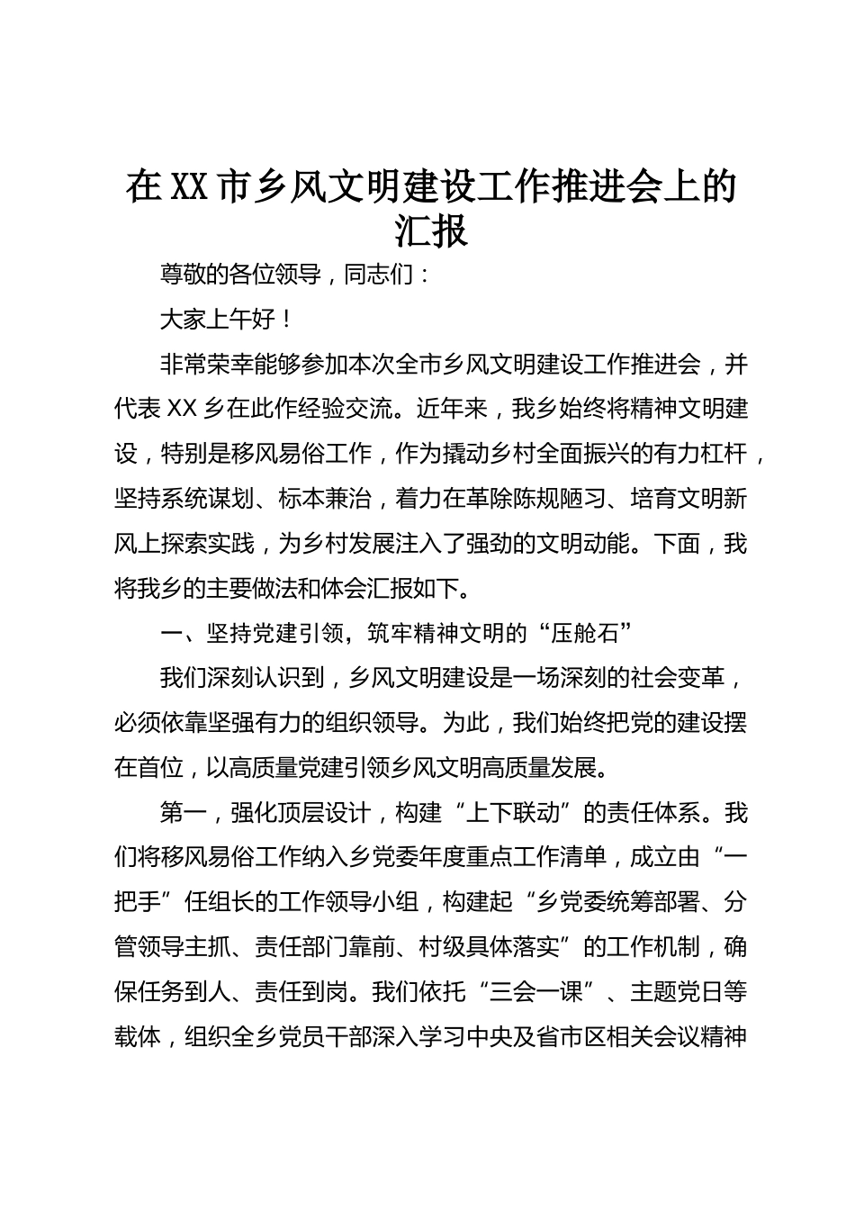 在XX市鄉(xiāng)風(fēng)文明建設(shè)工作推進(jìn)會(huì)上的匯報(bào)