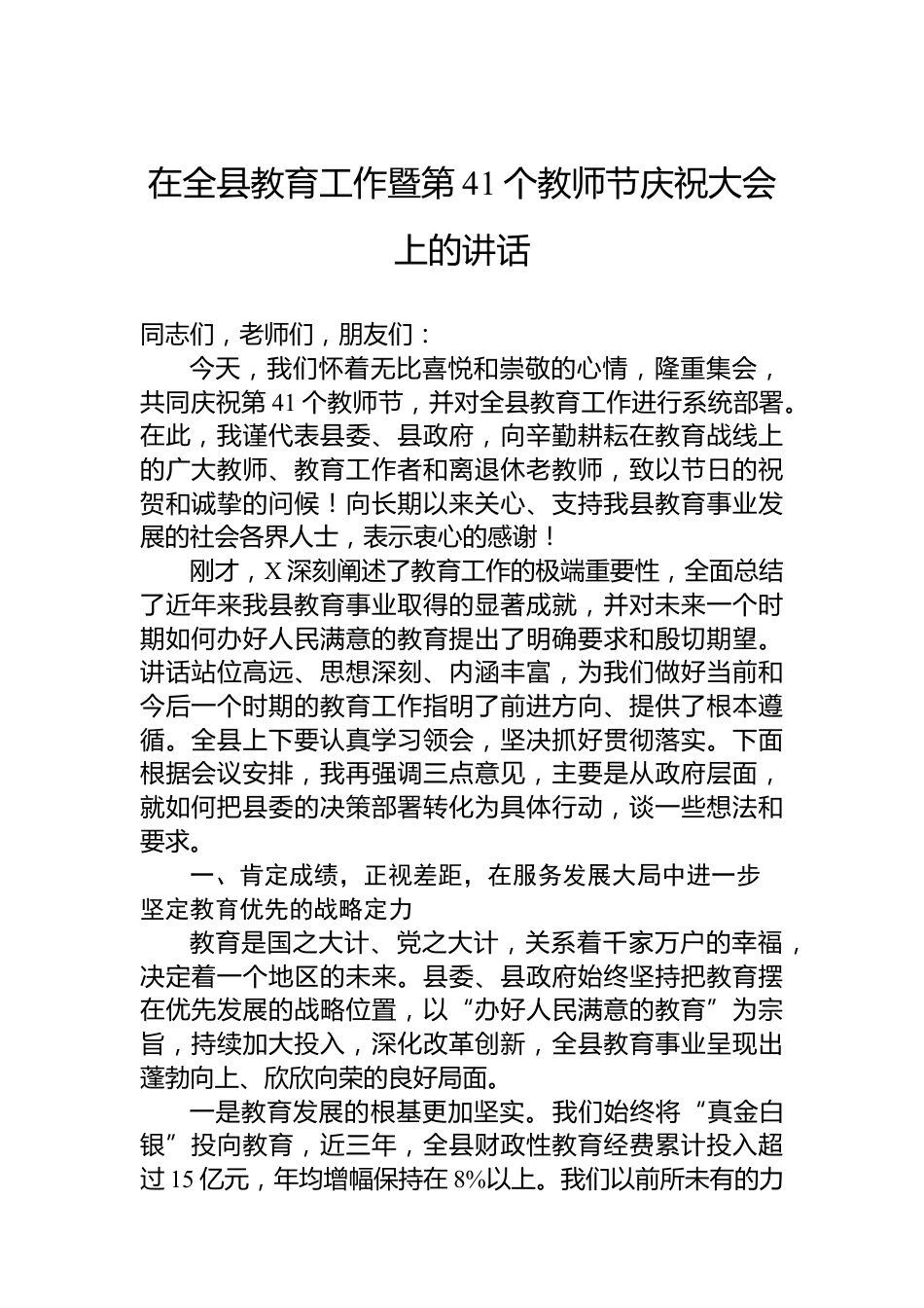 在全縣教育工作暨第41個(gè)教師節(jié)慶祝大會(huì)上的講話(huà)