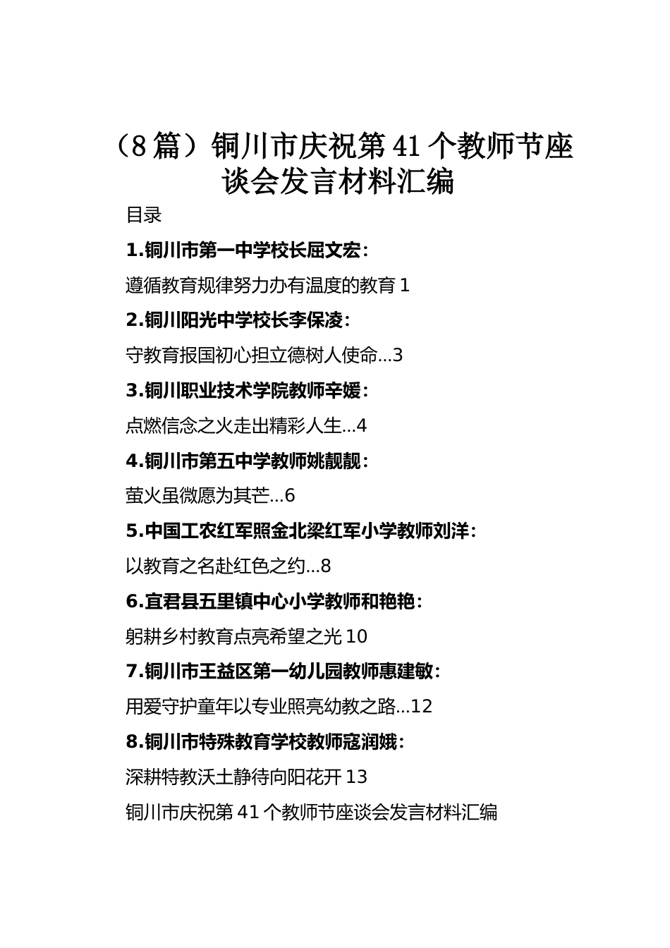 (8篇)銅川市慶祝第41個(gè)教師節(jié)座談會(huì)發(fā)言材料匯編