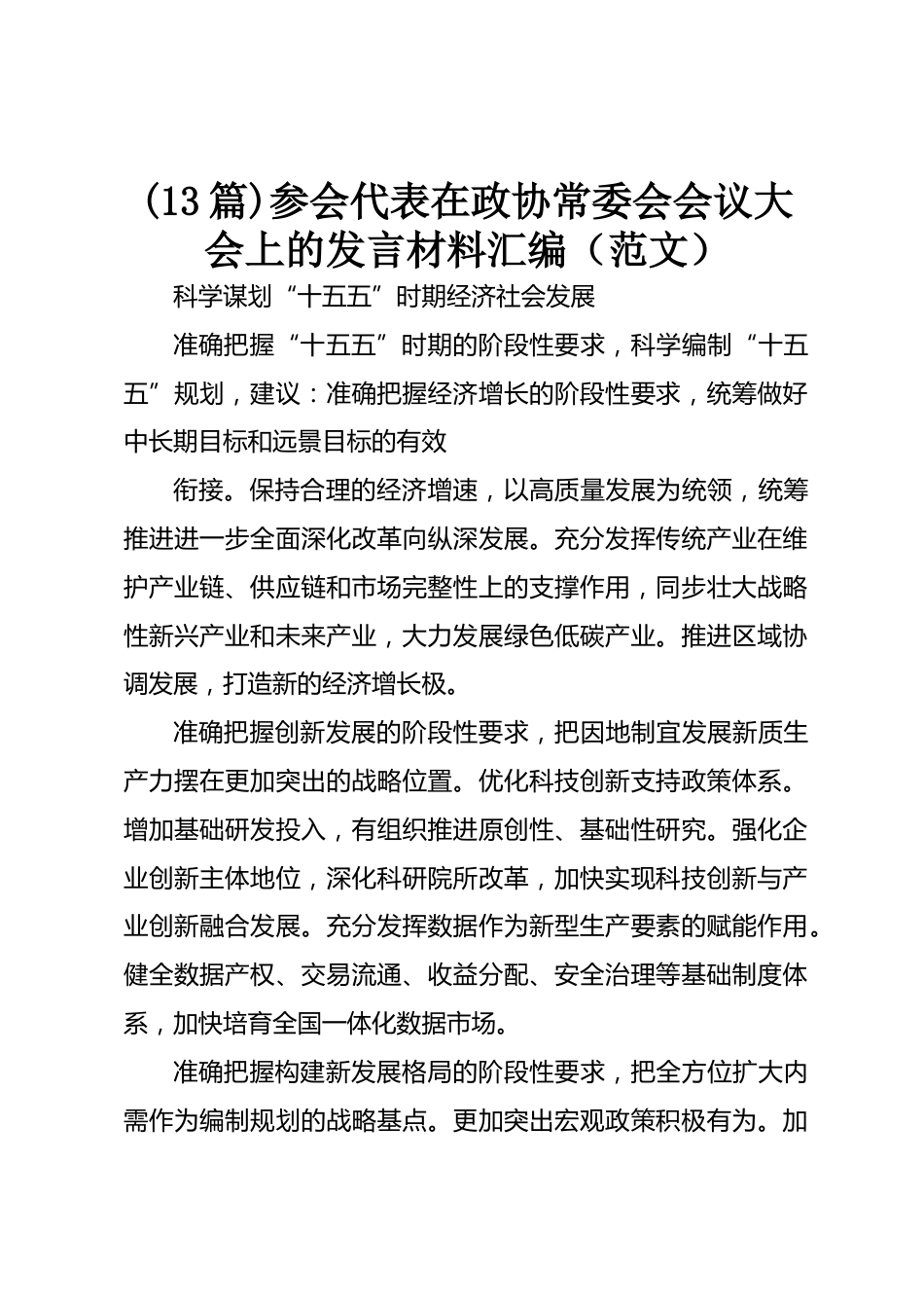 (13篇)參會(huì)代表在政協(xié)常委會(huì)會(huì)議大會(huì)上的發(fā)言材料匯編(范文)VIP免費(fèi)