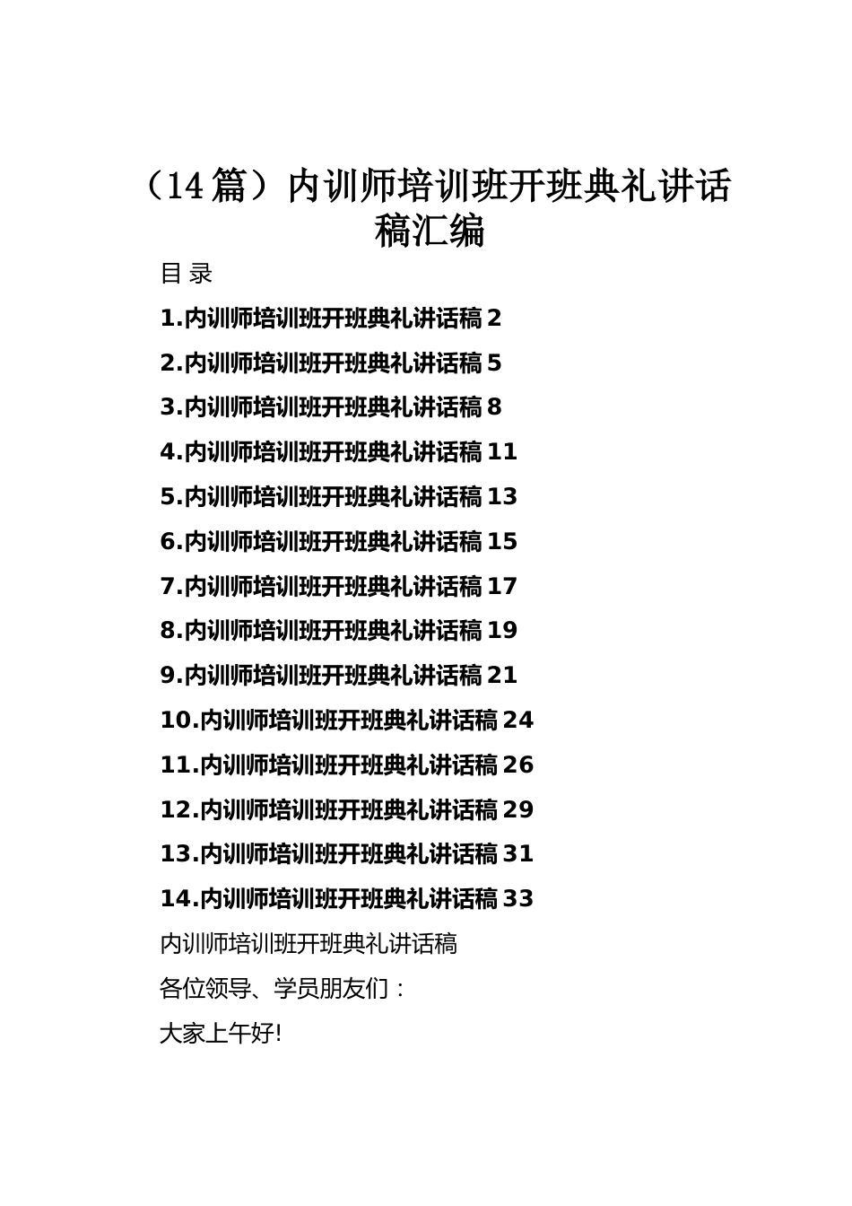(14篇)內(nèi)訓(xùn)師培訓(xùn)班開班典禮講話稿匯編目錄1.內(nèi)訓(xùn)師培訓(xùn)班開班典禮講話稿22.內(nèi)訓(xùn)師培訓(xùn)班開班典禮講話稿53.內(nèi)訓(xùn)師培訓(xùn)班開班典禮講話稿84.內(nèi)訓(xùn)師培訓(xùn)班開班典禮講話稿115.內(nèi)訓(xùn)師培訓(xùn)班開班典禮講話稿136.內(nèi)訓(xùn)師培訓(xùn)班開班典禮講話稿157.內(nèi)訓(xùn)師培訓(xùn)班開班典禮講話稿178.內(nèi)訓(xùn)師培訓(xùn)班開班典禮講話稿199.內(nèi)訓(xùn)師培訓(xùn)班開班典禮講話稿2110.內(nèi)訓(xùn)師培訓(xùn)班開班典禮講話稿2411.內(nèi)訓(xùn)師培訓(xùn)班開班典禮講話稿2612.內(nèi)訓(xùn)師培訓(xùn)班開班典禮講話稿2913.內(nèi)訓(xùn)師培訓(xùn)班開班典禮講話稿3114.內(nèi)訓(xùn)師培訓(xùn)班開班典禮講話稿33內(nèi)訓(xùn)師培訓(xùn)班開班典禮講話稿各位領(lǐng)導(dǎo)、學(xué)員朋友們:大家上午好!為認(rèn)真...