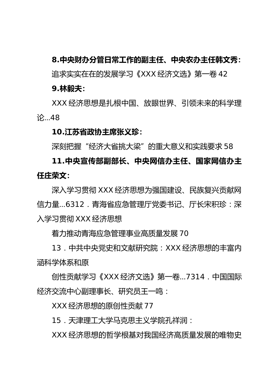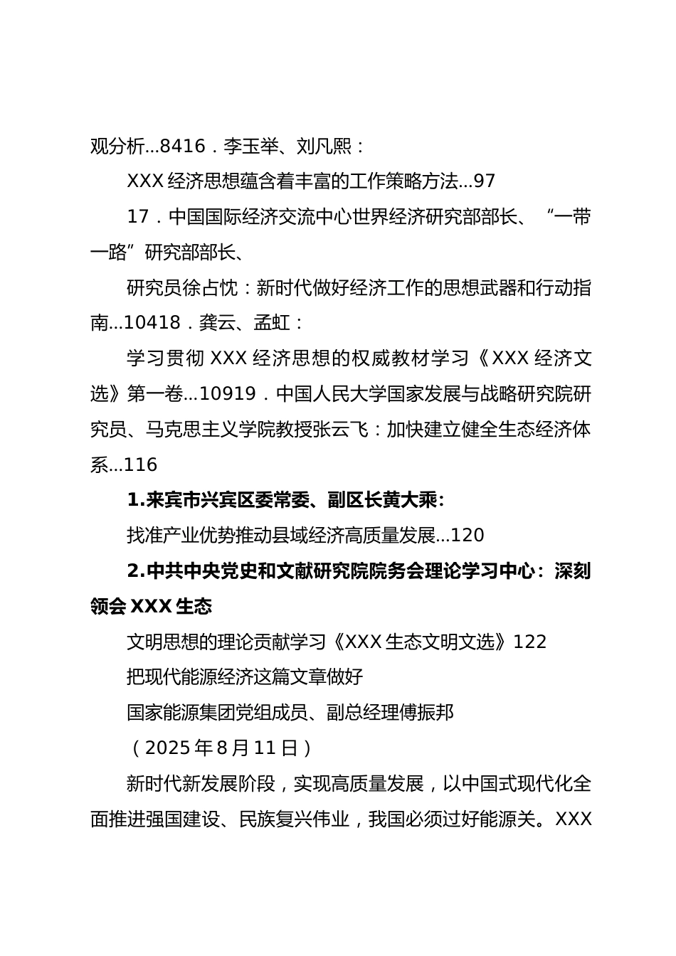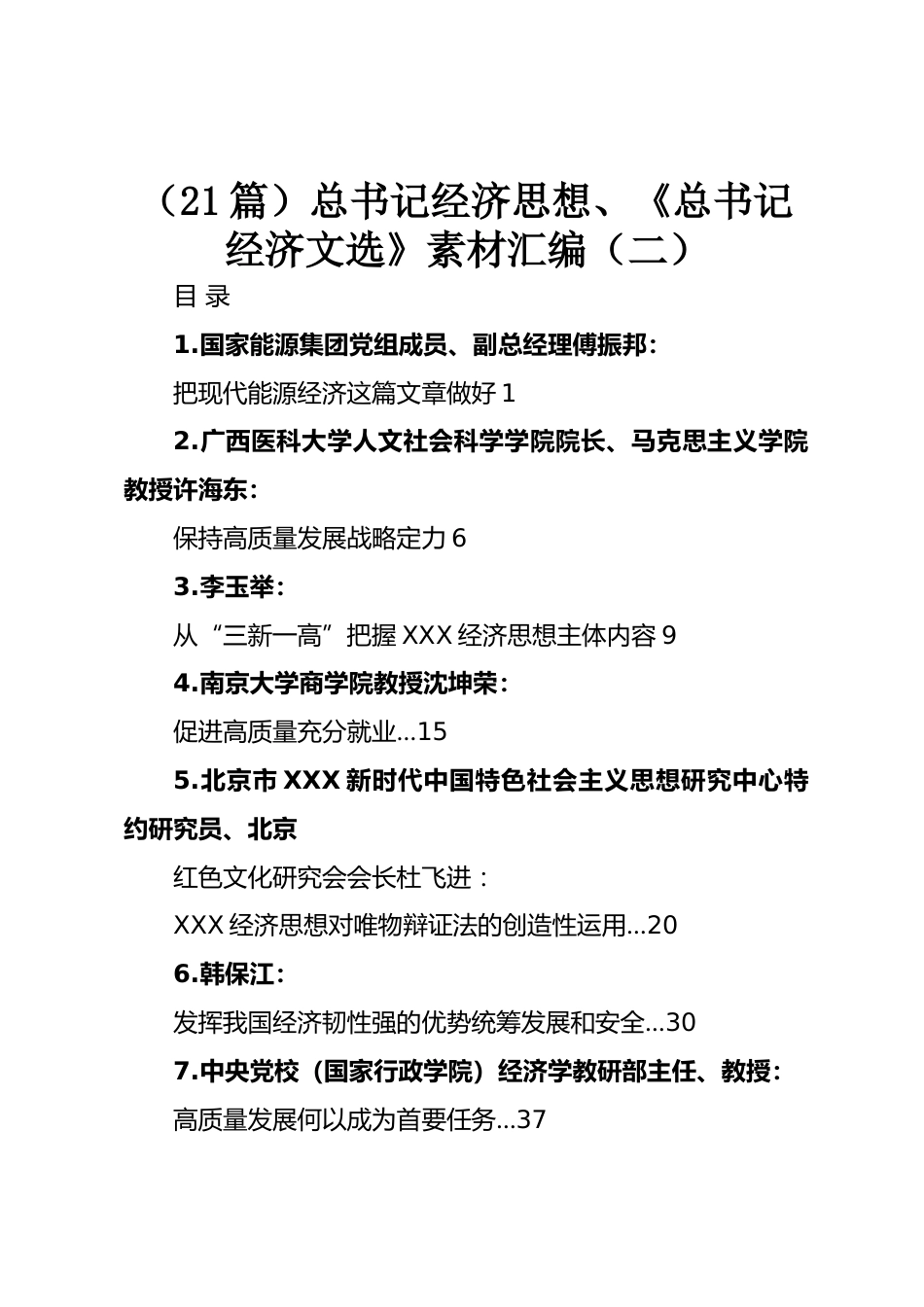 (21篇)總書記經(jīng)濟(jì)思想、《總書記經(jīng)濟(jì)文選》素材匯編(二)目錄1.國(guó)家能源集團(tuán)黨組成員、副總經(jīng)理傅振邦:把現(xiàn)代能源經(jīng)濟(jì)這篇文章做好12.廣西醫(yī)科大學(xué)人文社會(huì)科學(xué)學(xué)院院長(zhǎng)、馬克思主義學(xué)院教授許海東:保持高質(zhì)量發(fā)展戰(zhàn)略定力63.李玉舉:從“三新一高”把握XXX經(jīng)濟(jì)思想主體內(nèi)容94.南京大學(xué)商學(xué)院教授沈坤榮:促進(jìn)高質(zhì)量充分就業(yè)…155.北京市XXX新時(shí)代中國(guó)特色社會(huì)主義思想研究中心特約研究員、北京紅色文化研究會(huì)會(huì)長(zhǎng)杜飛進(jìn):XXX經(jīng)濟(jì)思想對(duì)唯物辯證法的創(chuàng)造性運(yùn)用…206.韓保江:發(fā)揮我國(guó)經(jīng)濟(jì)韌性強(qiáng)的優(yōu)勢(shì)統(tǒng)籌發(fā)展和安全…307.中央黨校(國(guó)家行政學(xué)院)經(jīng)濟(jì)學(xué)教研部主任...