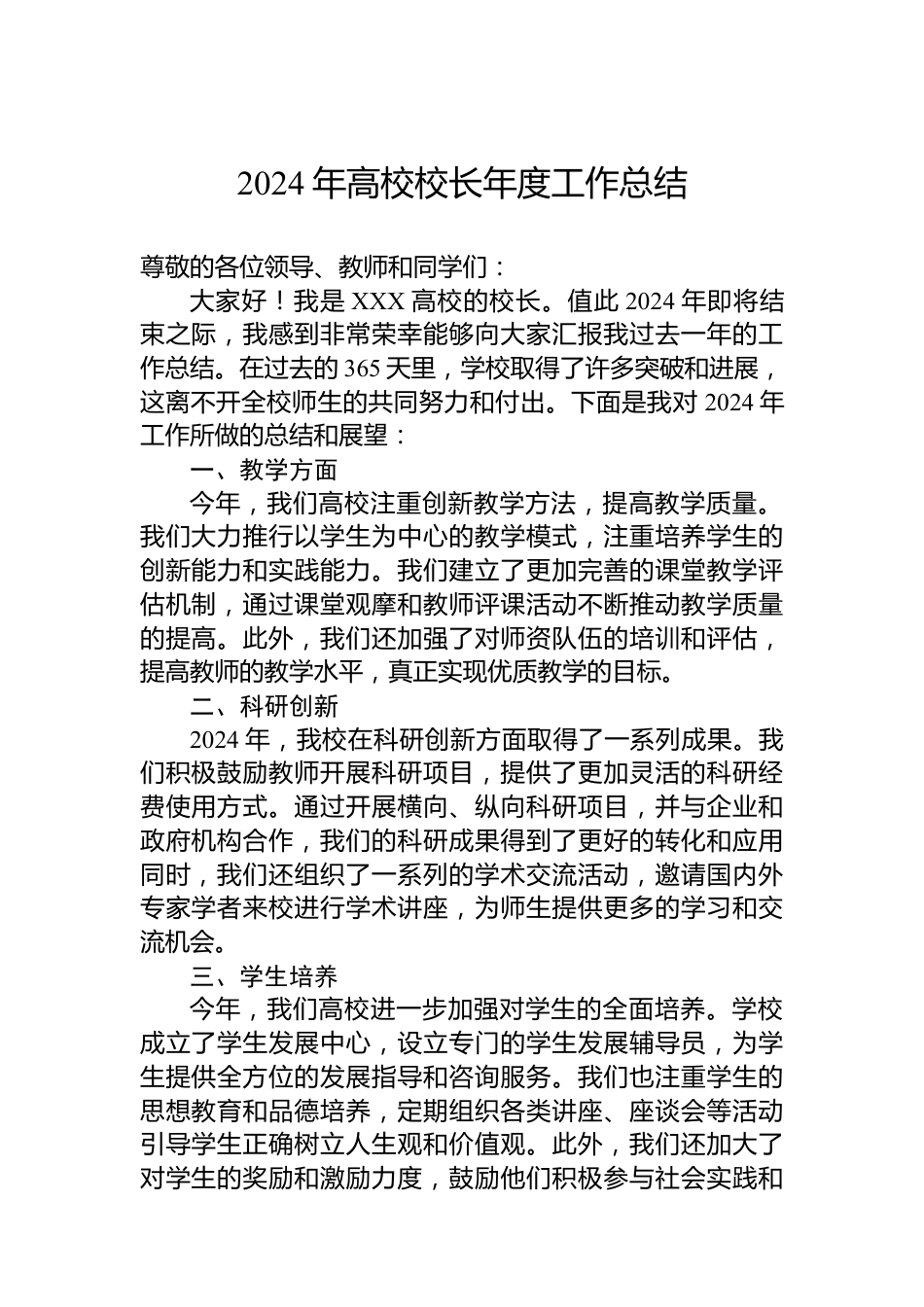2024年高校校長(zhǎng)年度工作總結(jié)