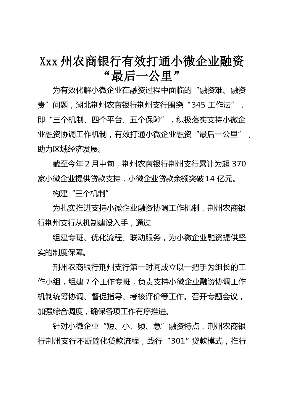 Xxx州農(nóng)商銀行 有效打通小微企業(yè)融資“ 最后一公里”VIP免費