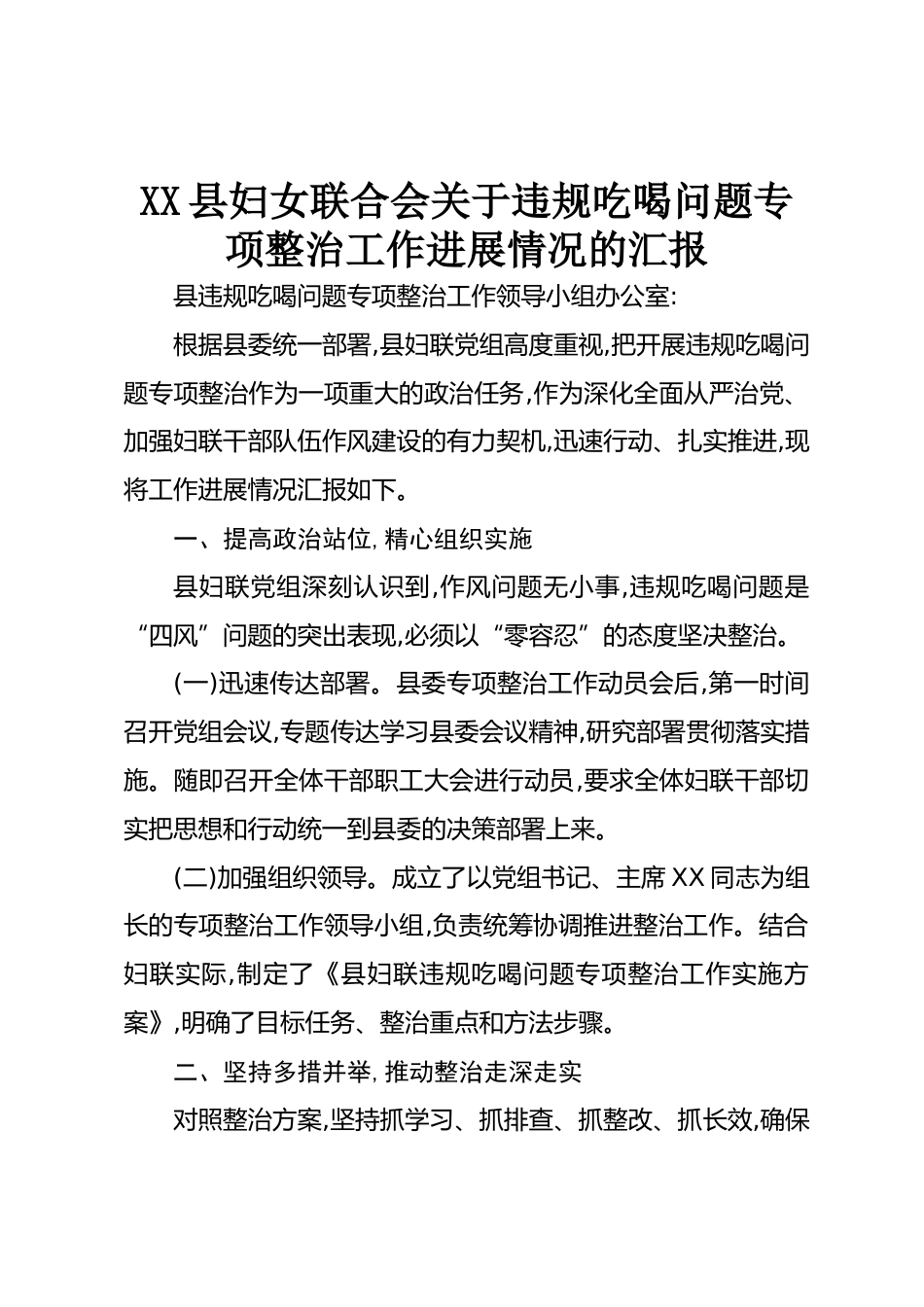 XX縣婦女聯(lián)合會關(guān)于違規(guī)吃喝問題專項整治工作進(jìn)展情況的匯報