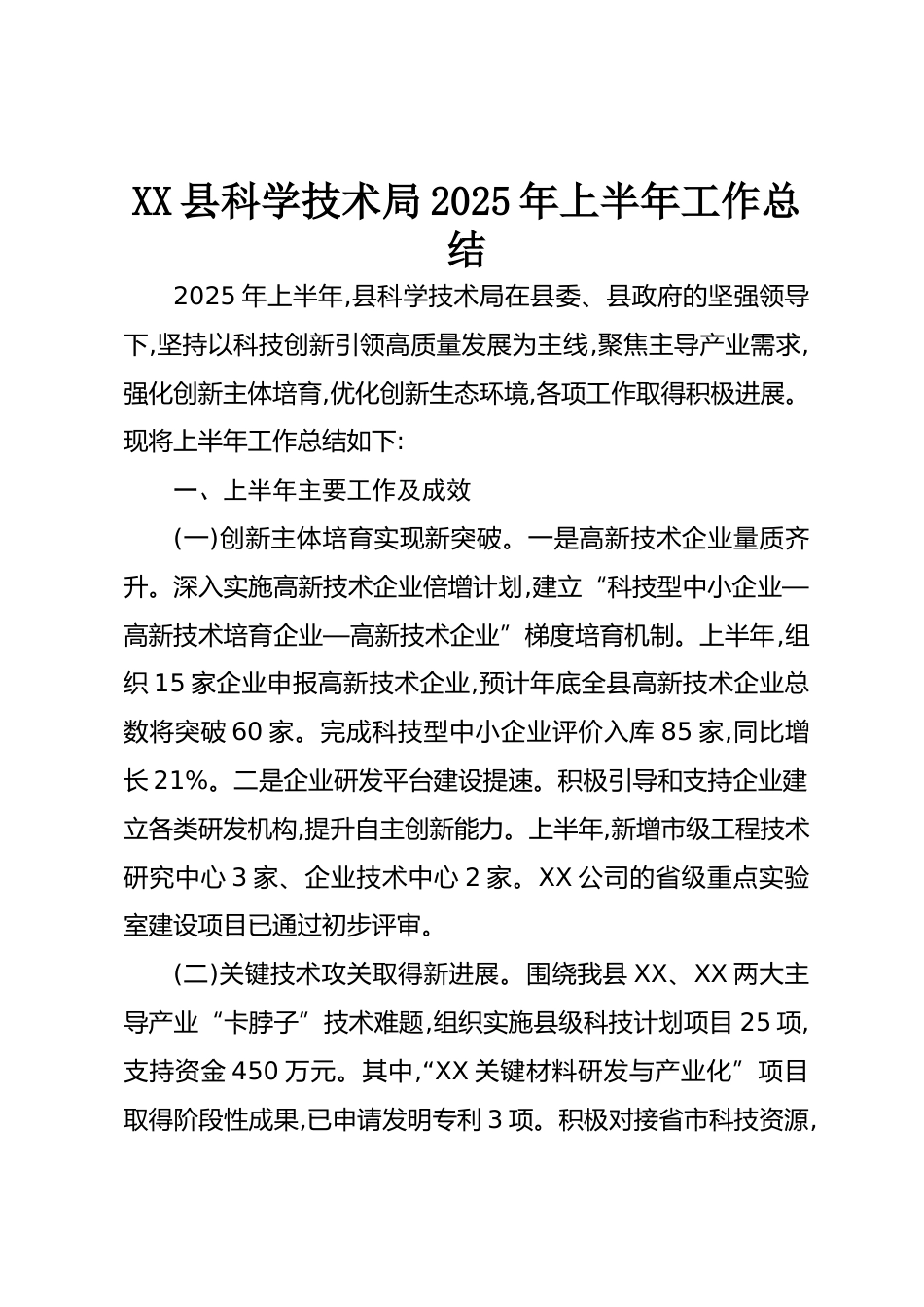 XX縣科學技術(shù)局2025年上半年工作總結(jié)