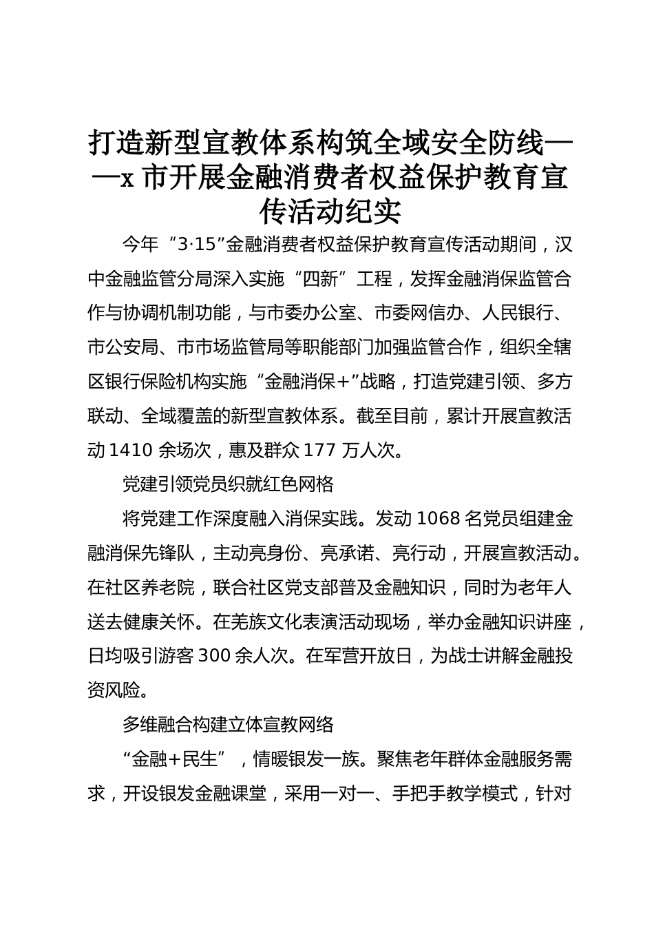 打造新型宣教體系 構(gòu)筑全域安全防線——x市開展金融消費(fèi)者權(quán)益保護(hù)教育宣傳活動(dòng)紀(jì)實(shí)