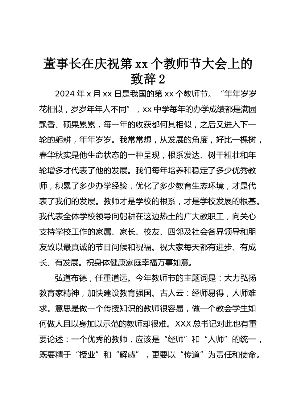 董事長在慶祝第xx個(gè)教師節(jié)大會(huì)上的致辭2