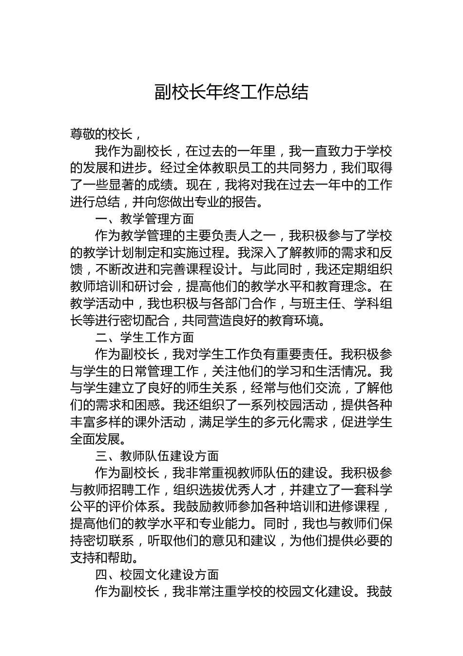 副校長年終工作總結(jié)尊敬的校長,我作為副校長,在過去的一年里,我一直致力于學(xué)校的發(fā)展和進(jìn)步。經(jīng)過全體教職員工的共同努力,我們?nèi)〉昧艘恍╋@著的成績?,F(xiàn)在,我將對我在過去一年中的工作進(jìn)行總結(jié),并向您做出專業(yè)的報告。一、教學(xué)管理方面作為教學(xué)管理的主要負(fù)責(zé)人之一,我積極參與了學(xué)校的教學(xué)計劃制定和實施過程。我深入了解教師的需求和反饋,不斷改進(jìn)和完善課程設(shè)計。與此同時,我還定期組織教師培訓(xùn)和研討會,提高他們的教學(xué)水平和教育理念。在教學(xué)活動中,我也積極與各部門合作,與班主任、學(xué)科組長等進(jìn)行密切配合,共同營造良好的教育環(huán)境。二、學(xué)生工作方面作...