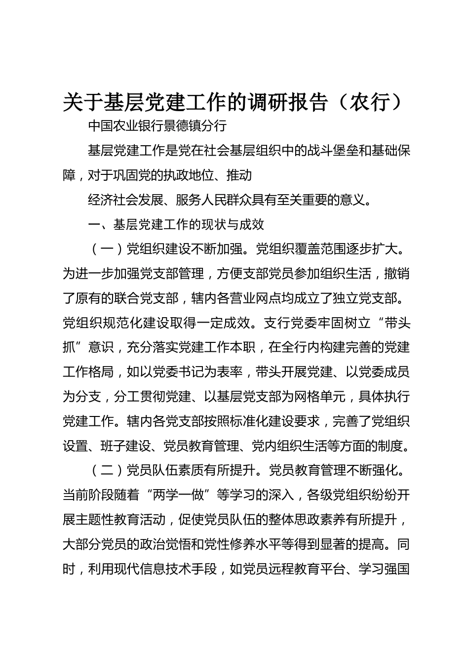 關(guān)于基層黨建工作的調(diào)研報(bào)告(農(nóng)行)