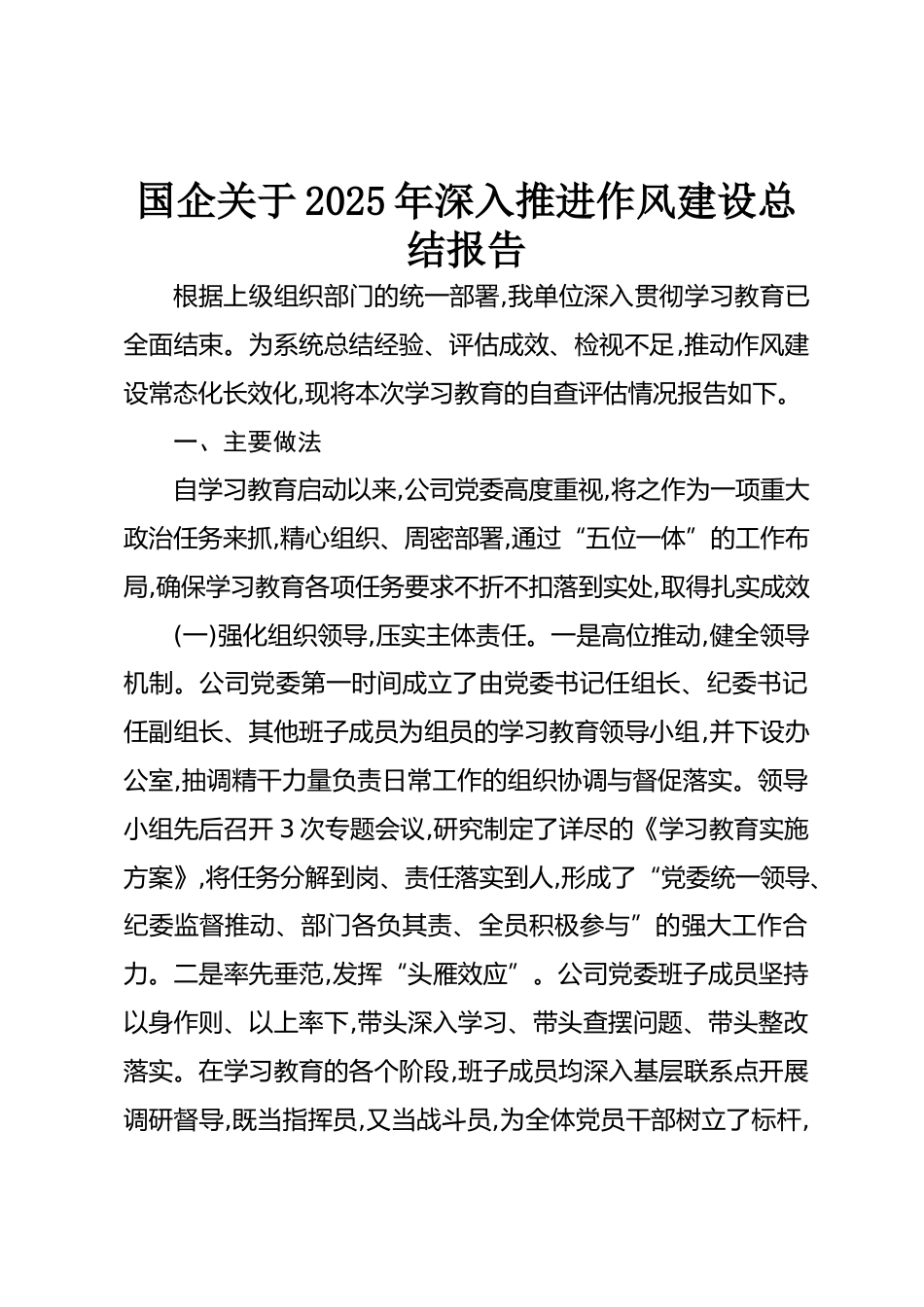 國(guó)企關(guān)于2025年深入推進(jìn)作風(fēng)建設(shè)總結(jié)報(bào)告