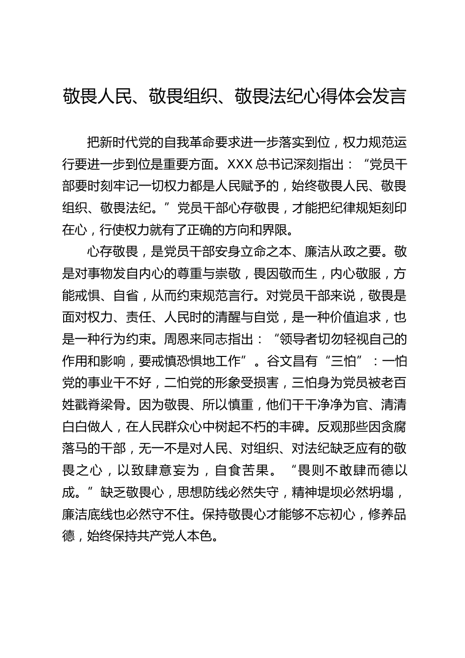 敬畏人民、敬畏組織、敬畏法紀心得體會發(fā)言