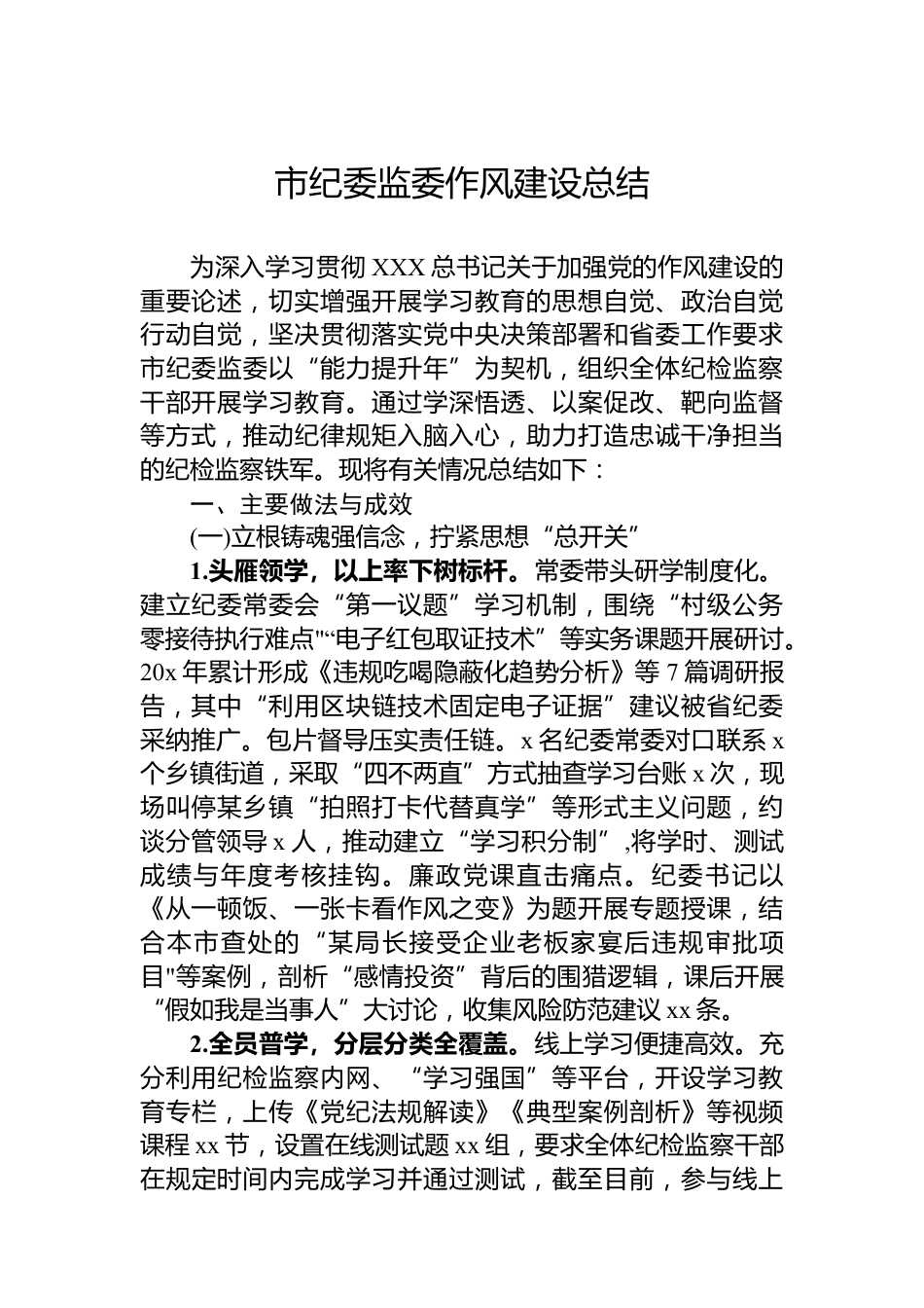 市紀委監(jiān)委作風建設(shè)總結(jié)