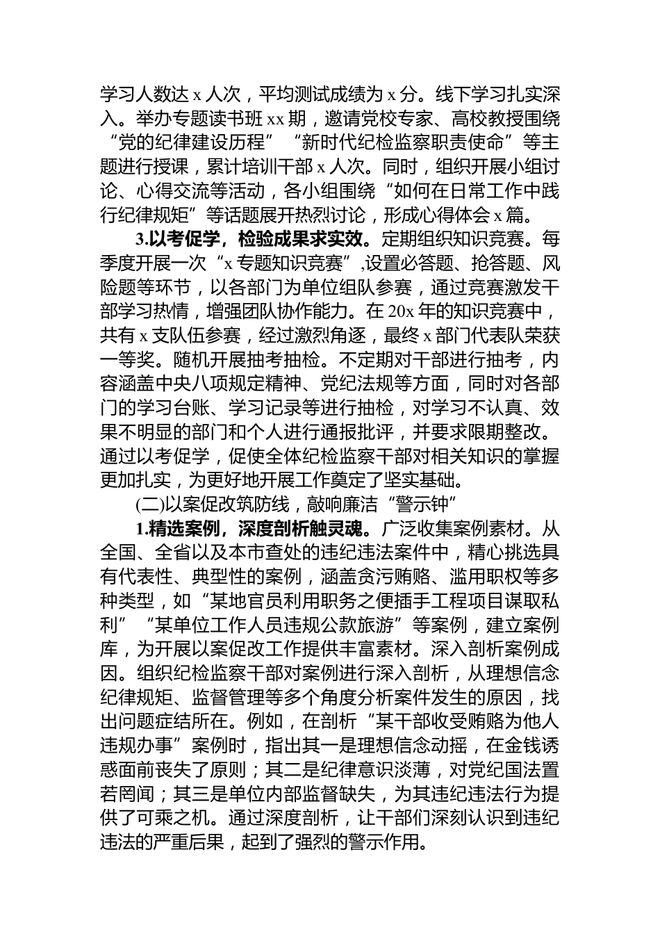 市紀委監(jiān)委作風建設(shè)總結(jié)為深入學習貫徹XXX總書記關(guān)于加強黨的作風建設(shè)的重要論述,切實增強開展學習教育的思想自覺、政治自覺行動自覺,堅決貫徹落實黨中央決策部署和省委工作要求市紀委監(jiān)委以“能力提升年”為契機,組織全體紀檢監(jiān)察干部開展學習教育。通過學深悟透、以案促改、靶向監(jiān)督等方式,推動紀律規(guī)矩入腦入心,助力打造忠誠干凈擔當?shù)募o檢監(jiān)察鐵軍。現(xiàn)將有關(guān)情況總結(jié)如下:一、主要做法與成效(一)立根鑄魂強信念,擰緊思想“總開關(guān)”1.頭雁領(lǐng)學,以上率下樹標桿。常委帶頭研學制度化。建立紀委常委會“第一議題”學習機制,圍繞“村級公務(wù)零接待執(zhí)行難點"“電子...
