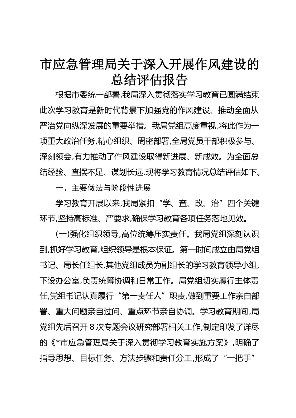 市應(yīng)急管理局關(guān)于深入開展作風建設(shè)的總結(jié)評估報告