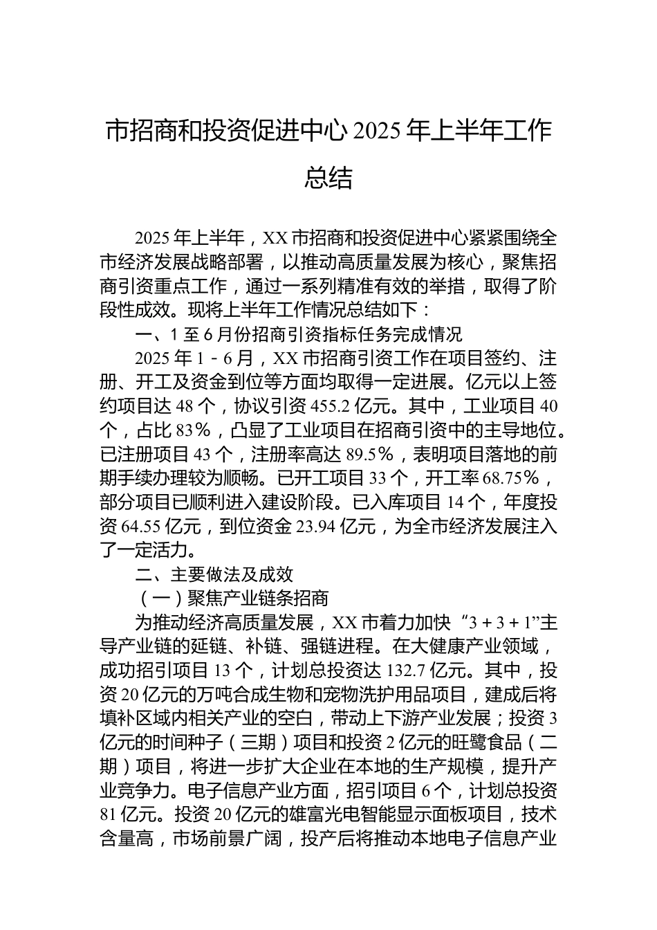 市招商和投資促進(jìn)中心2025年上半年工作總結(jié)