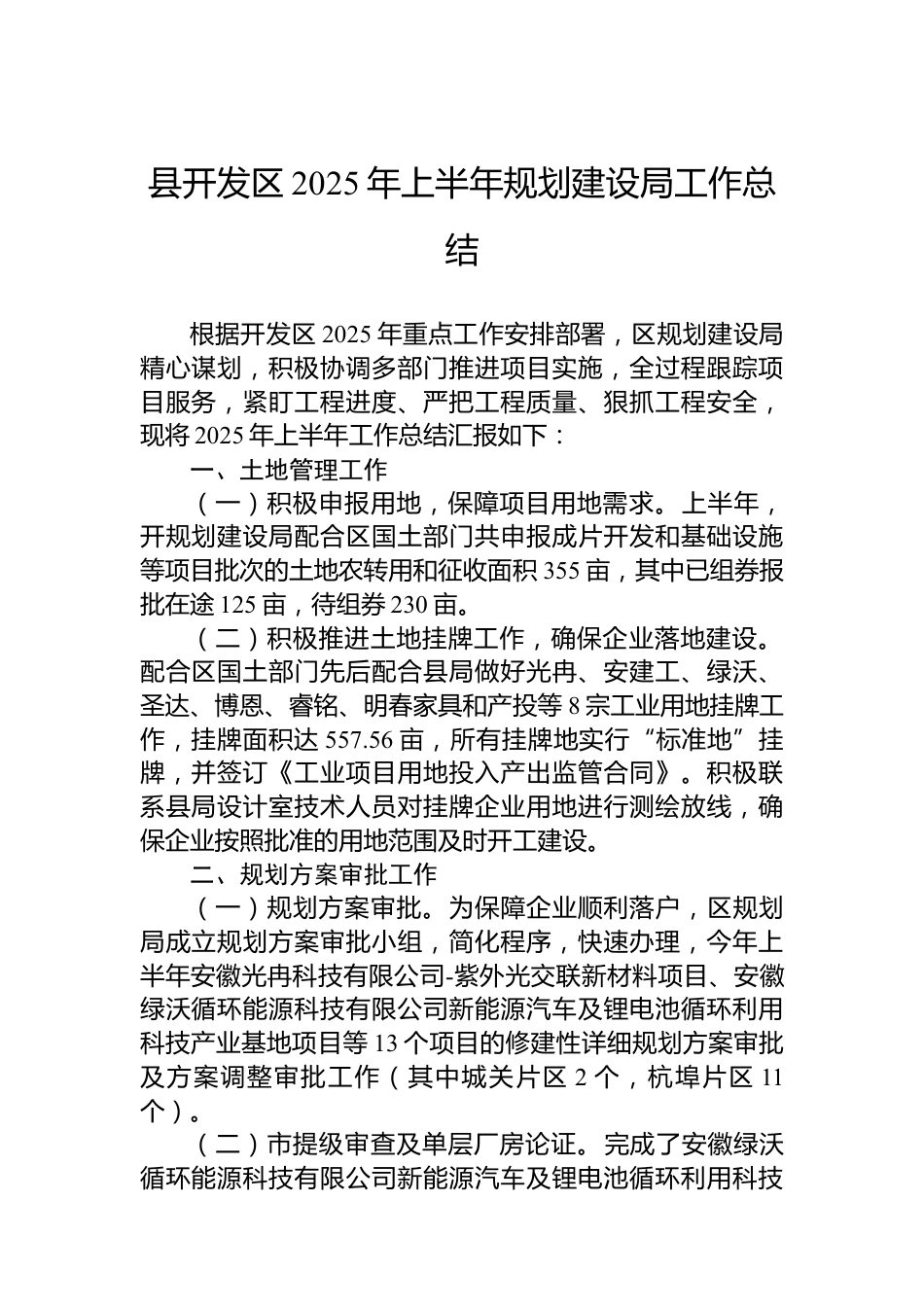 縣開發(fā)區(qū)2025年上半年規(guī)劃建設(shè)局工作總結(jié)