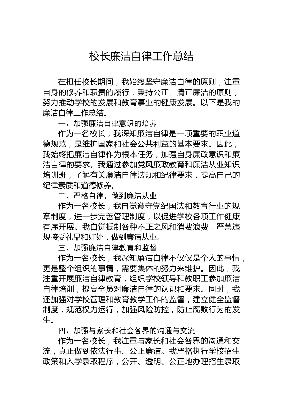 校長廉潔自律工作總結(jié)