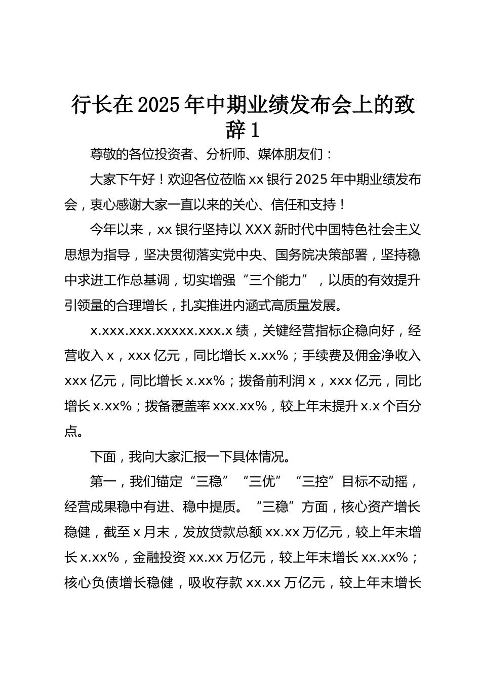 行長(zhǎng)在2025年中期業(yè)績(jī)發(fā)布會(huì)上的致辭1