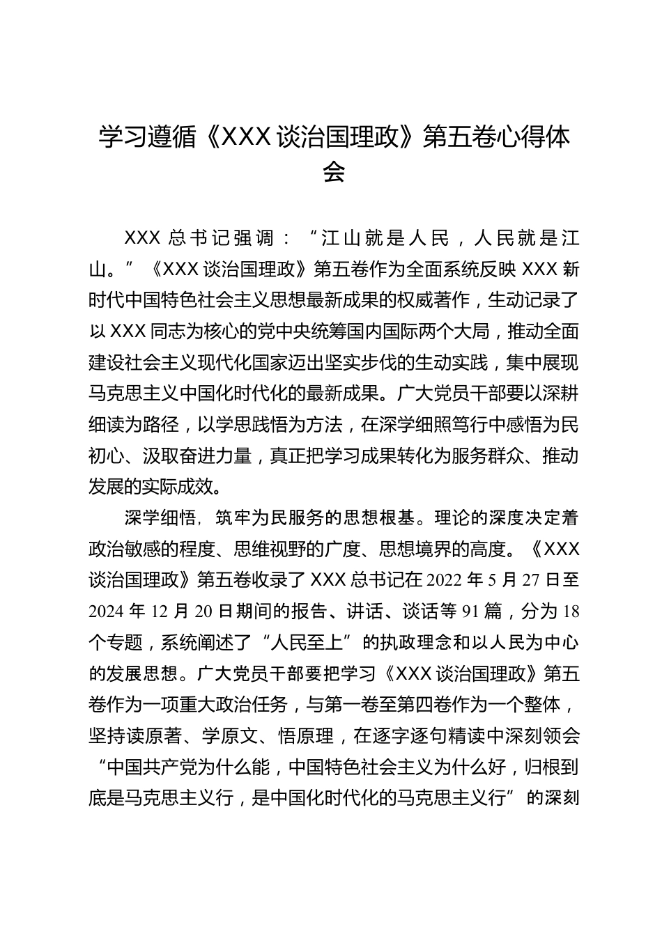 學(xué)習(xí)遵循《XXX談治國(guó)理政》第五卷心得體會(huì)XXX總書(shū)記強(qiáng)調(diào):“江山就是人民,人民就是江山?!薄禭XX談治國(guó)理政》第五卷作為全面系統(tǒng)反映XXX新時(shí)代中國(guó)特色社會(huì)主義思想最新成果的權(quán)威著作,生動(dòng)記錄了以XXX同志為核心的黨中央統(tǒng)籌國(guó)內(nèi)國(guó)際兩個(gè)大局,推動(dòng)全面建設(shè)社會(huì)主義現(xiàn)代化國(guó)家邁出堅(jiān)實(shí)步伐的生動(dòng)實(shí)踐,集中展現(xiàn)馬克思主義中國(guó)化時(shí)代化的最新成果。廣大黨員干部要以深耕細(xì)讀為路徑,以學(xué)思踐悟?yàn)榉椒ǎ谏顚W(xué)細(xì)照篤行中感悟?yàn)槊癯跣?、汲取奮進(jìn)力量,真正把學(xué)習(xí)成果轉(zhuǎn)化為服務(wù)群眾、推動(dòng)發(fā)展的實(shí)際成效。深學(xué)悟,筑牢民服的思想根基。理的深度決定著細(xì)為務(wù)論政治敏感的...