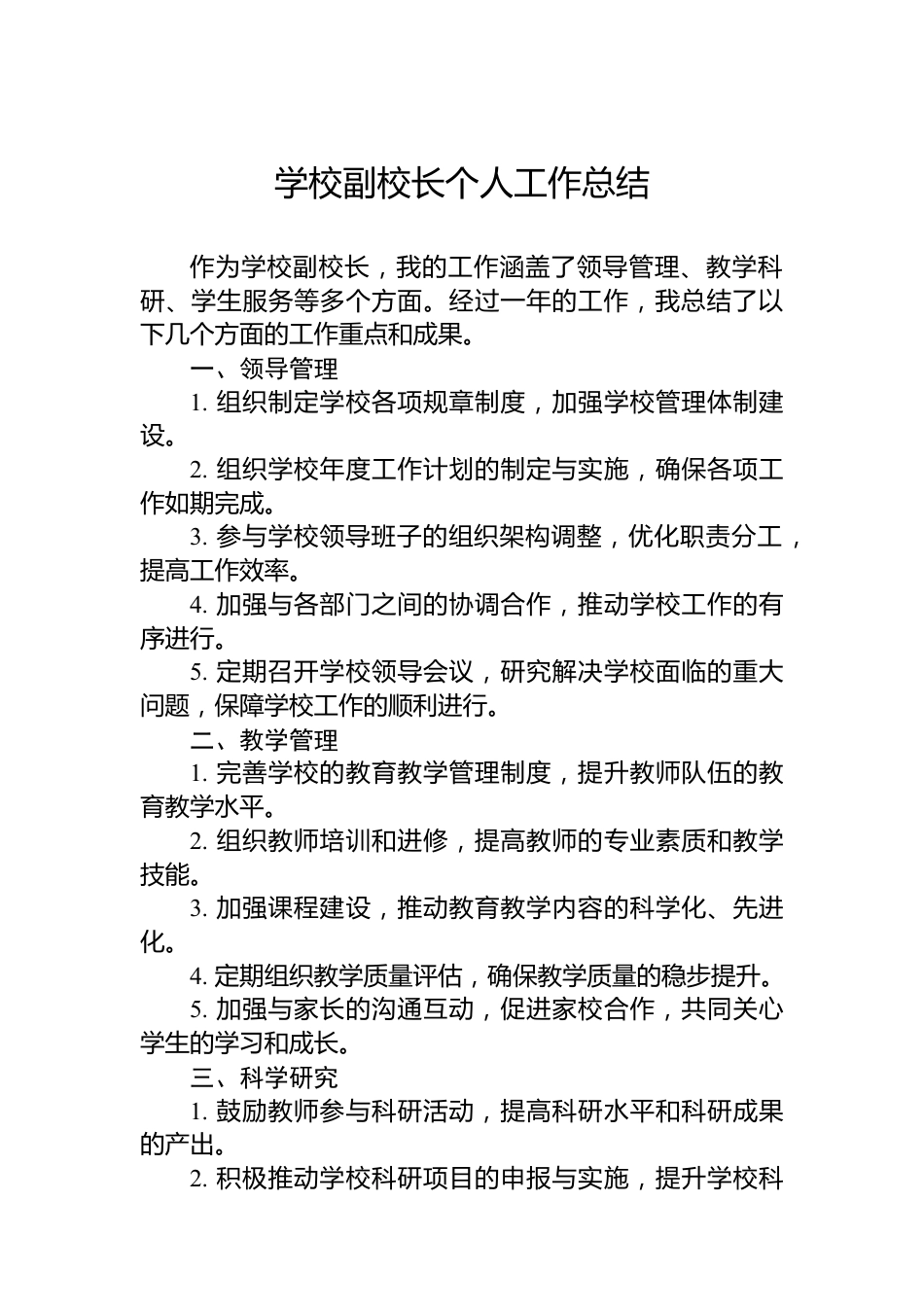 學校副校長個人工作總結(jié)作為學校副校長,我的工作涵蓋了領(lǐng)導管理、教學科研、學生服務等多個方面。經(jīng)過一年的工作,我總結(jié)了以下幾個方面的工作重點和成果。一、領(lǐng)導管理1.組織制定學校各項規(guī)章制度,加強學校管理體制建設。2.組織學校年度工作計劃的制定與實施,確保各項工作如期完成。3.參與學校領(lǐng)導班子的組織架構(gòu)調(diào)整,優(yōu)化職責分工,提高工作效率。4.加強與各部門之間的協(xié)調(diào)合作,推動學校工作的有序進行。5.定期召開學校領(lǐng)導會議,研究解決學校面臨的重大問題,保障學校工作的順利進行。二、教學管理1.完善學校的教育教學管理制度,提升教師隊伍的教育教學水平。2....